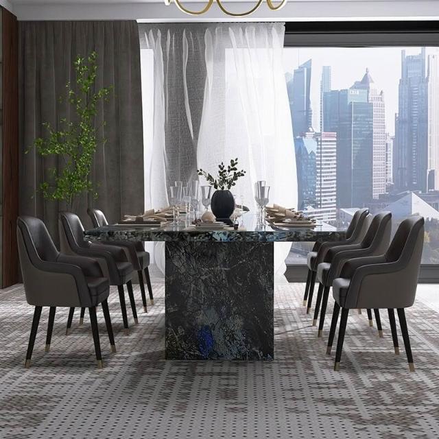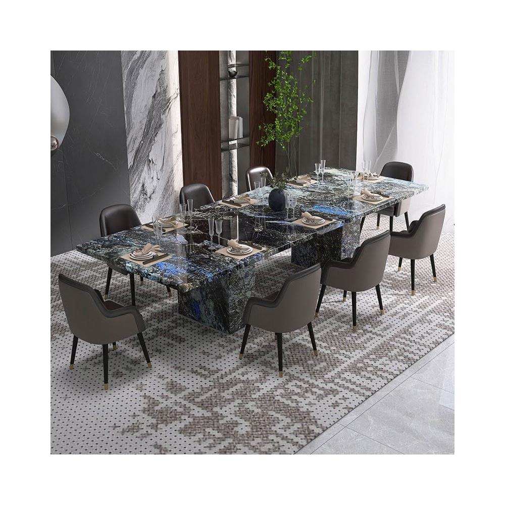 藍翡翠大理石餐桌長方形輕奢高檔餐桌椅組合別墅2025新款飯桌