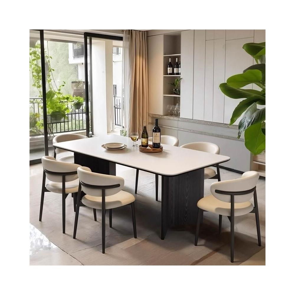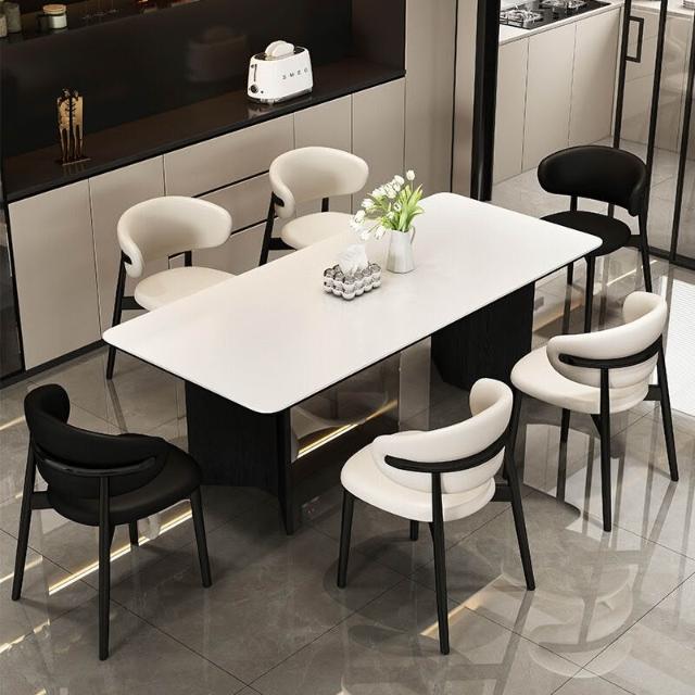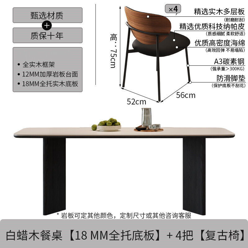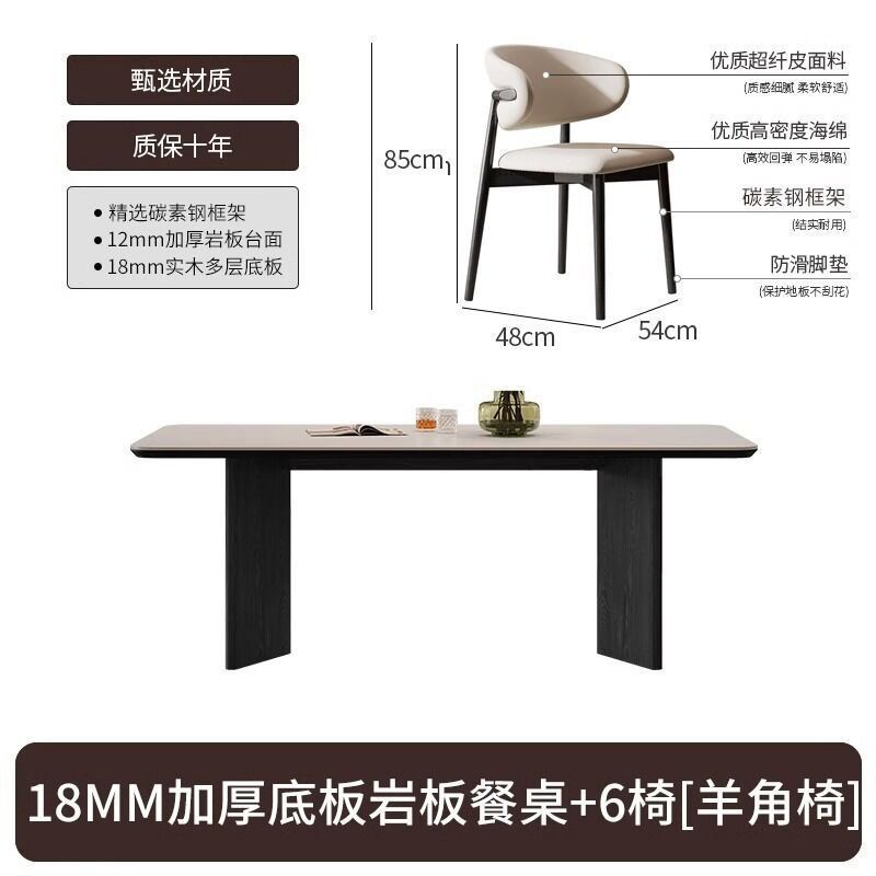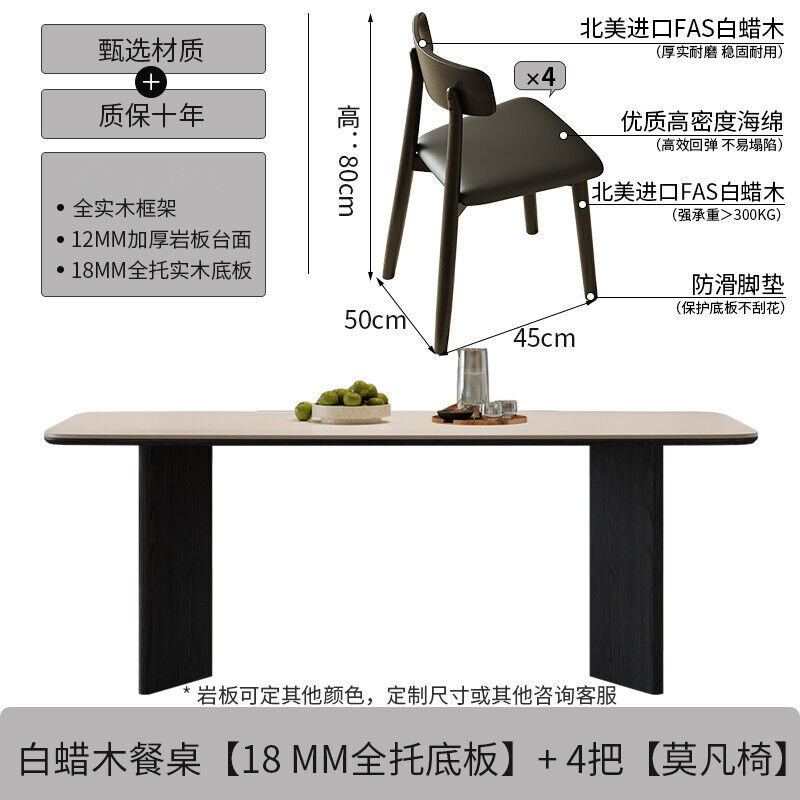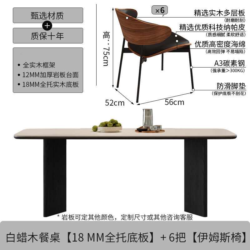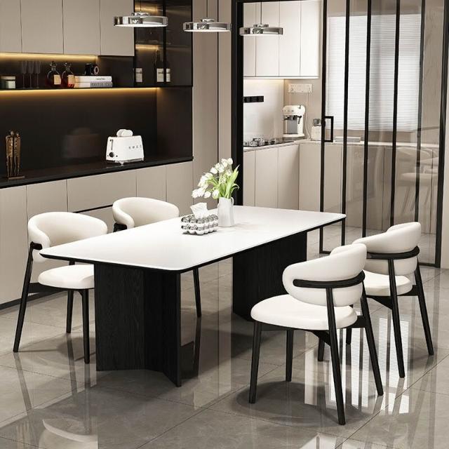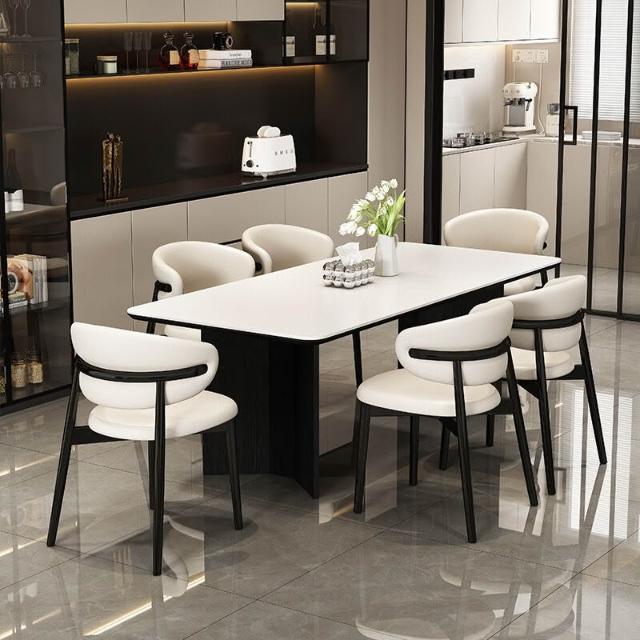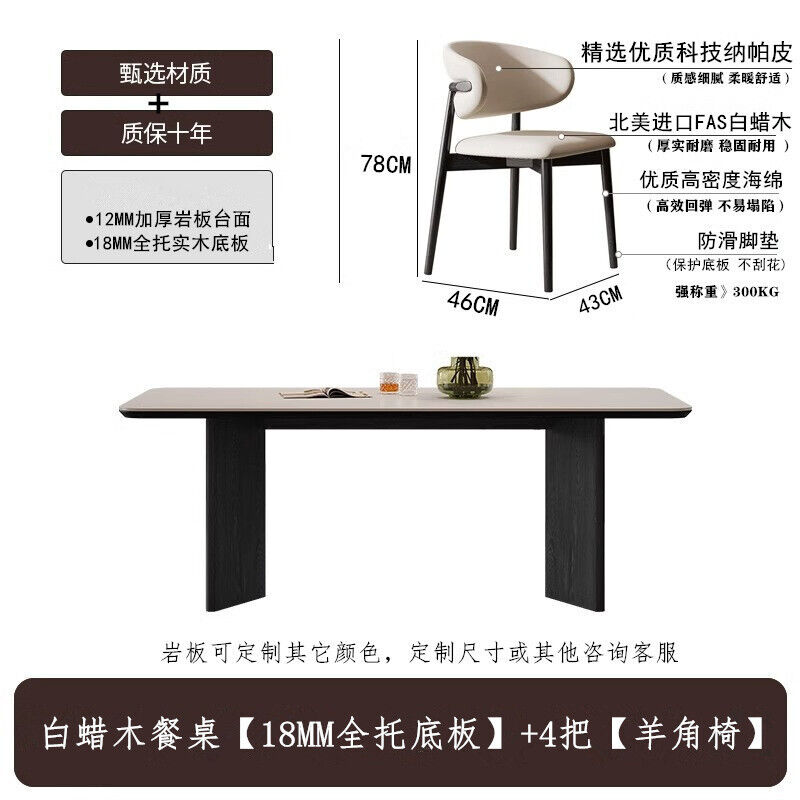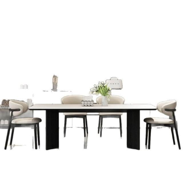 意式輕奢實木巖板餐桌家用現代簡約小戶型白蠟木餐桌椅組合長方形