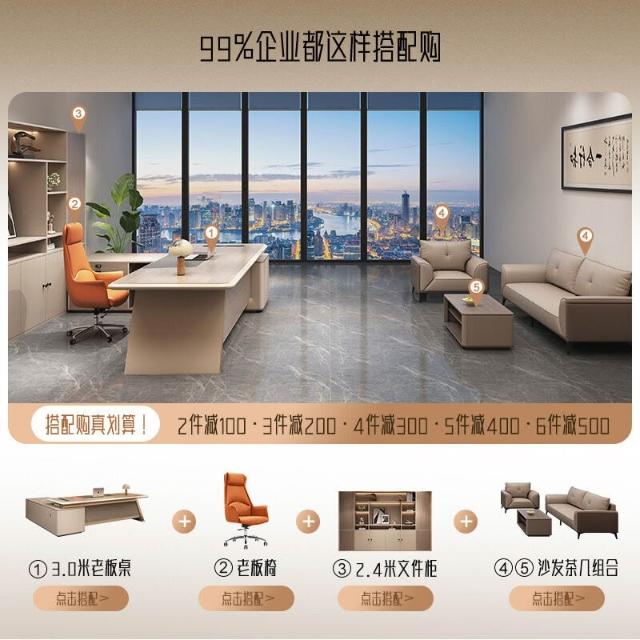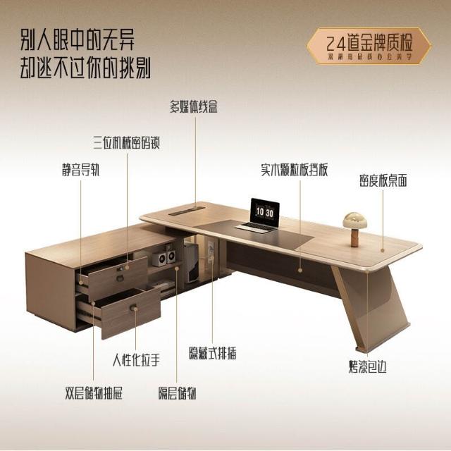 辦公桌老板桌輕奢高級感老板臺簡約現代經理辦公室小型桌椅組合