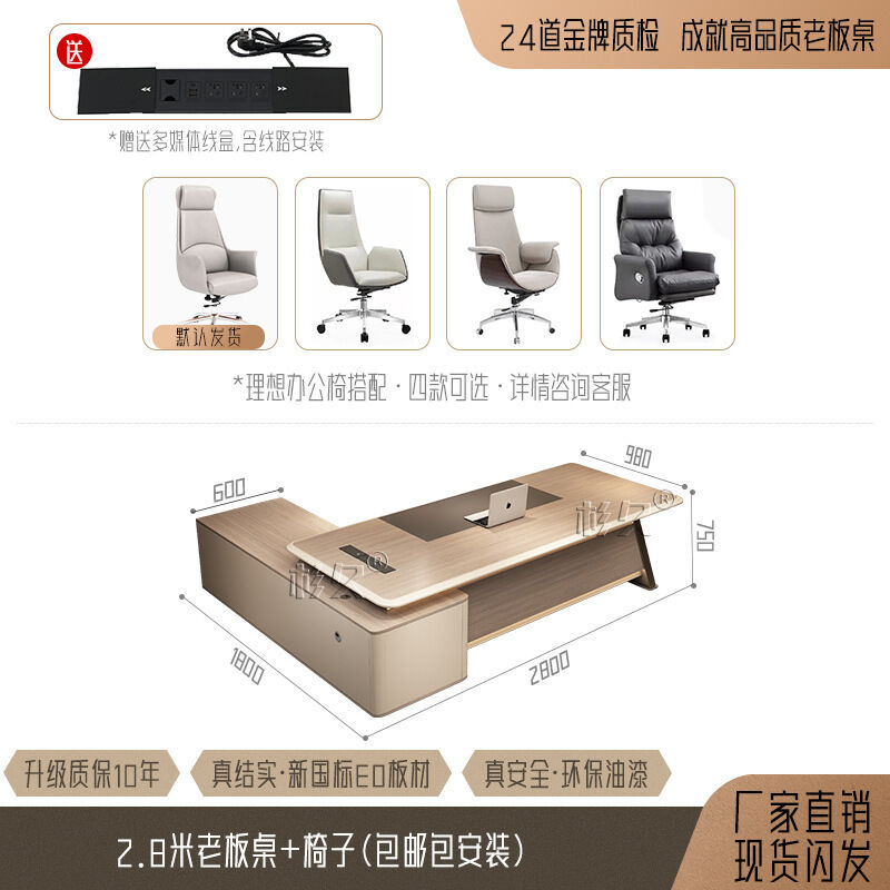 辦公桌老板桌輕奢高級感老板臺簡約現代經理辦公室小型桌椅組合