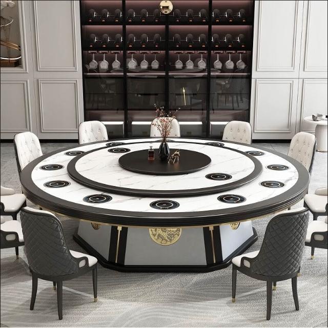 餐桌大圓桌酒店2米新中式20人轉盤飯店實木巖板商用飯桌