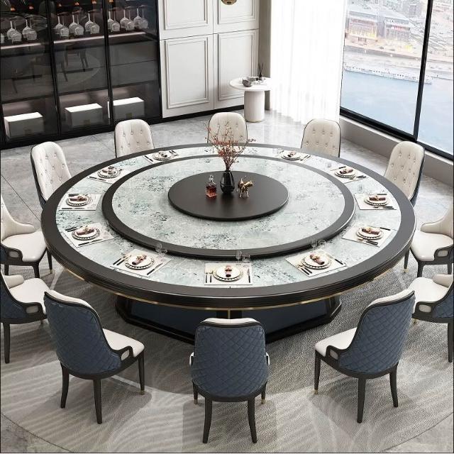 餐桌大圓桌酒店2米新中式20人轉盤飯店實木巖板商用飯桌