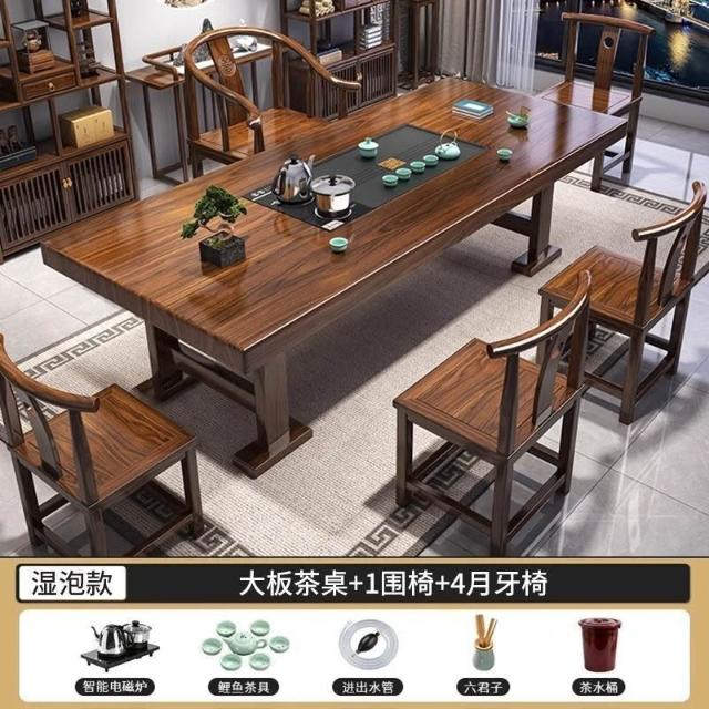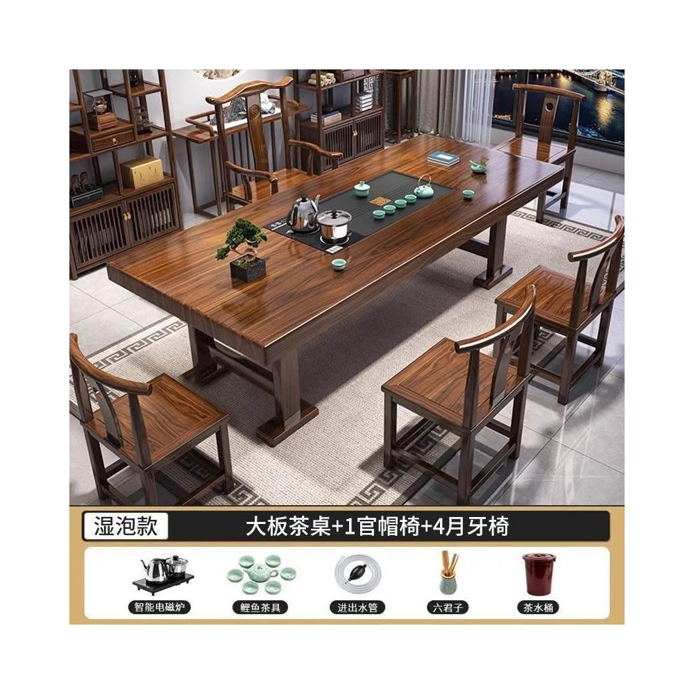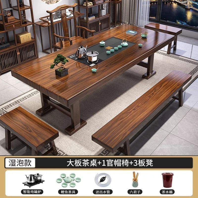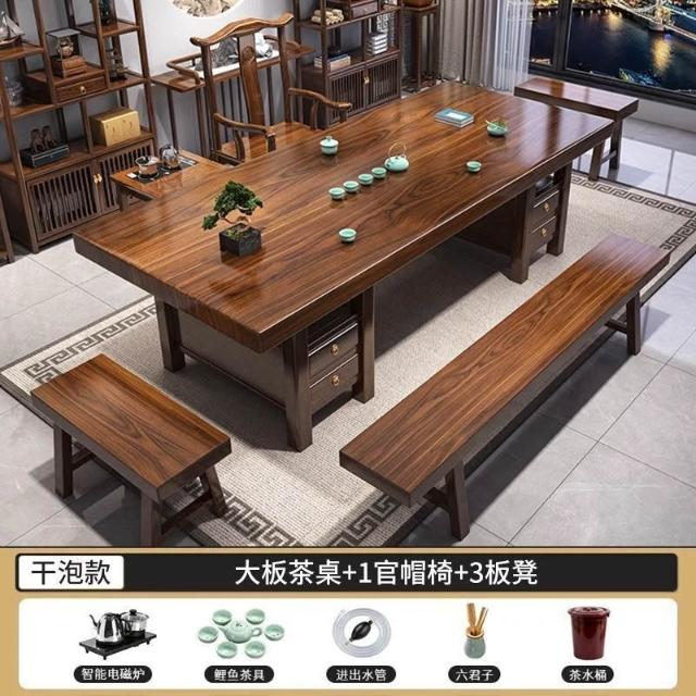 實木大板茶桌椅組合平面款茶桌一體一整套泡茶家用茶幾帶茶櫃批發