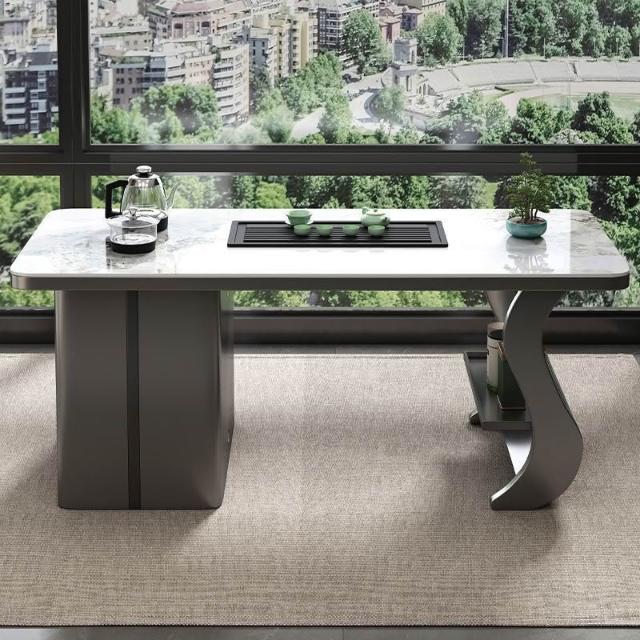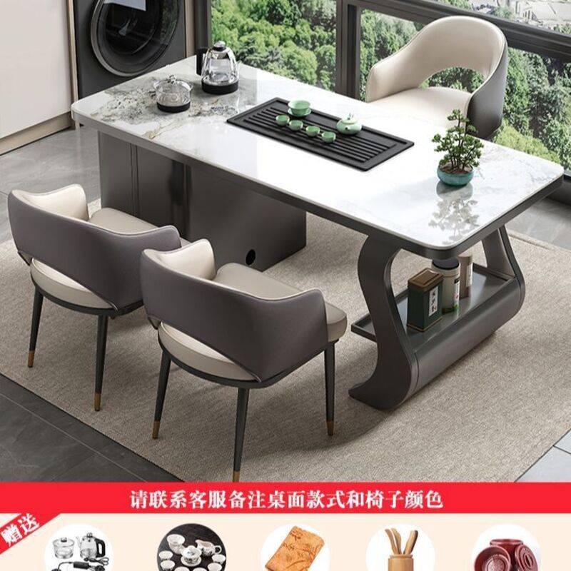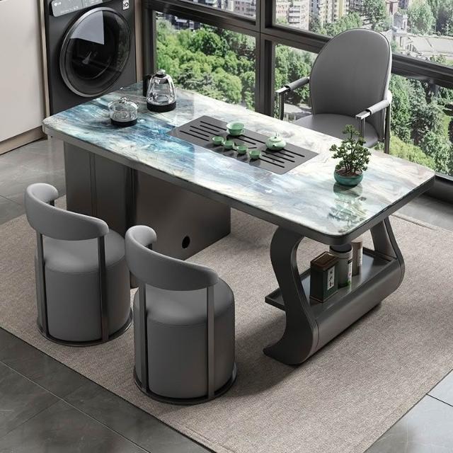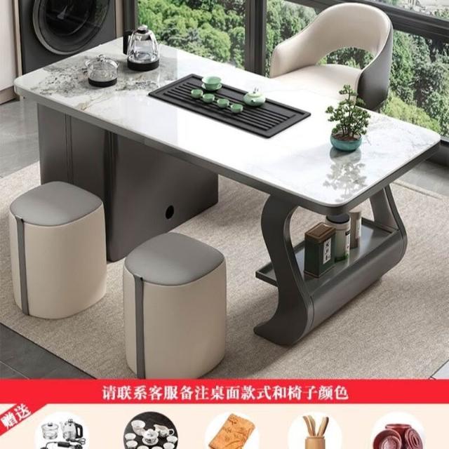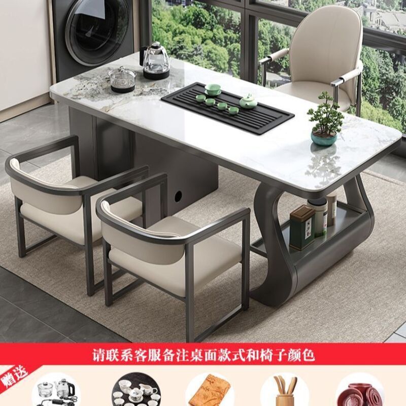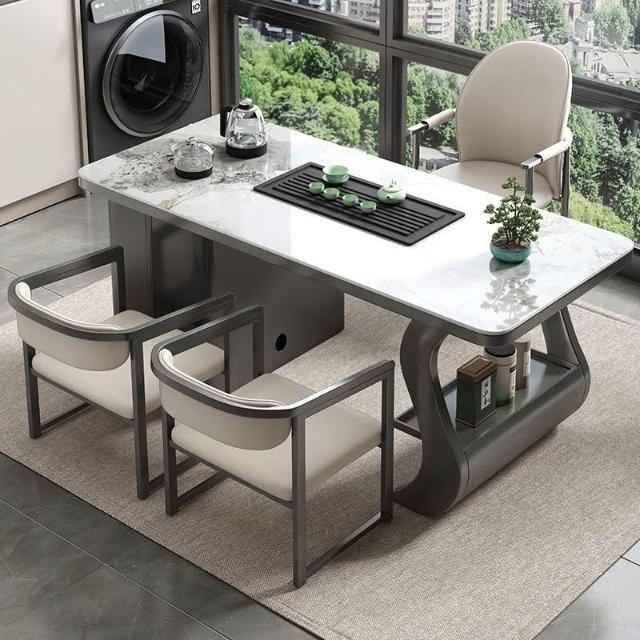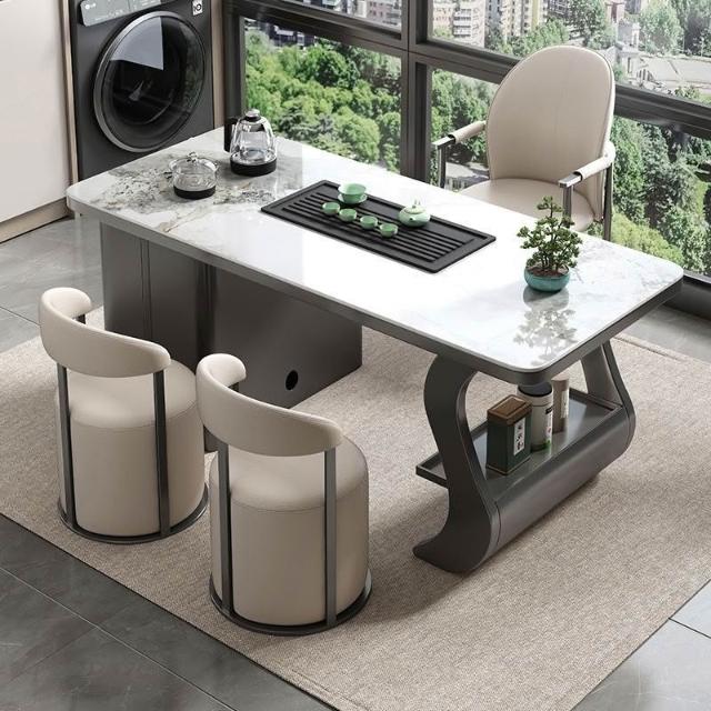 輕奢現代巖板奢石茶桌椅組合陽臺燒水壺一體茶桌辦公室小茶臺茶幾