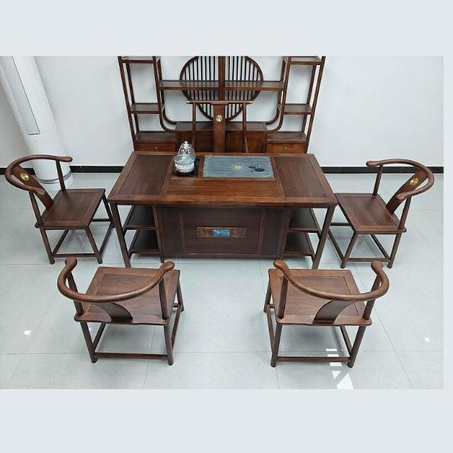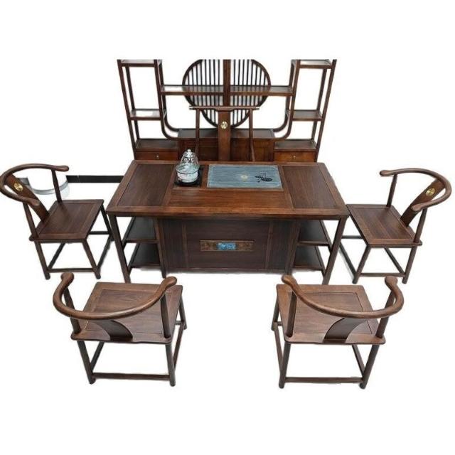 烏金木新中式茶桌椅組合辦公室家用幹泡臺禅意實木泡茶幾簡約茶臺