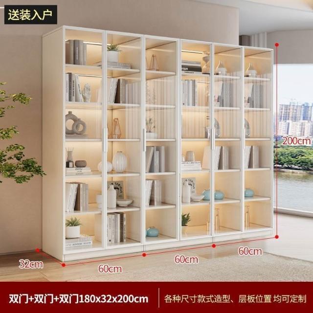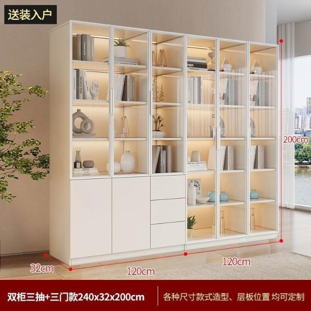 實木生態板書櫃透明門一體家用客廳靠墻輕奢現代玻璃門展示櫃工廠