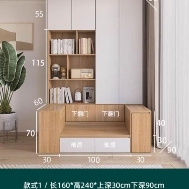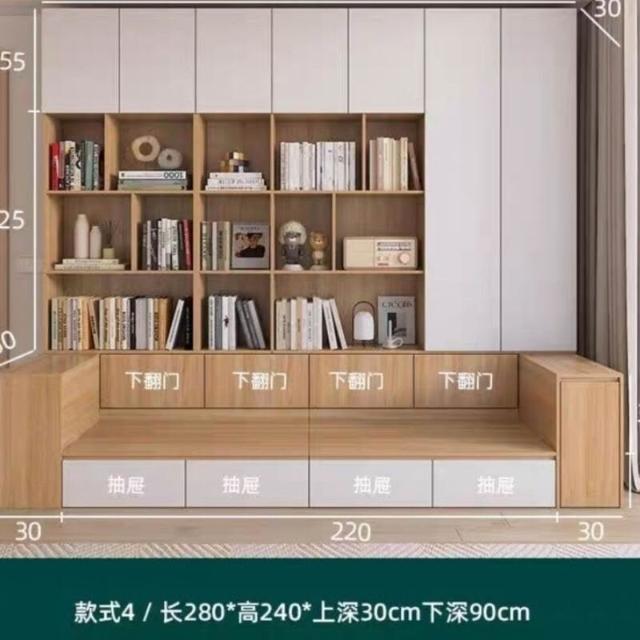 沙發書櫃一體靠墻櫃書櫥組合多功能家用滿墻卡座書架背景儲物櫃