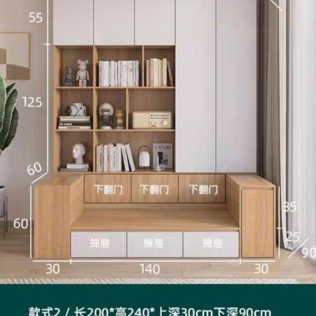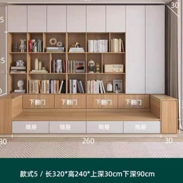 沙發書櫃一體靠墻櫃書櫥組合多功能家用滿墻卡座書架背景儲物櫃