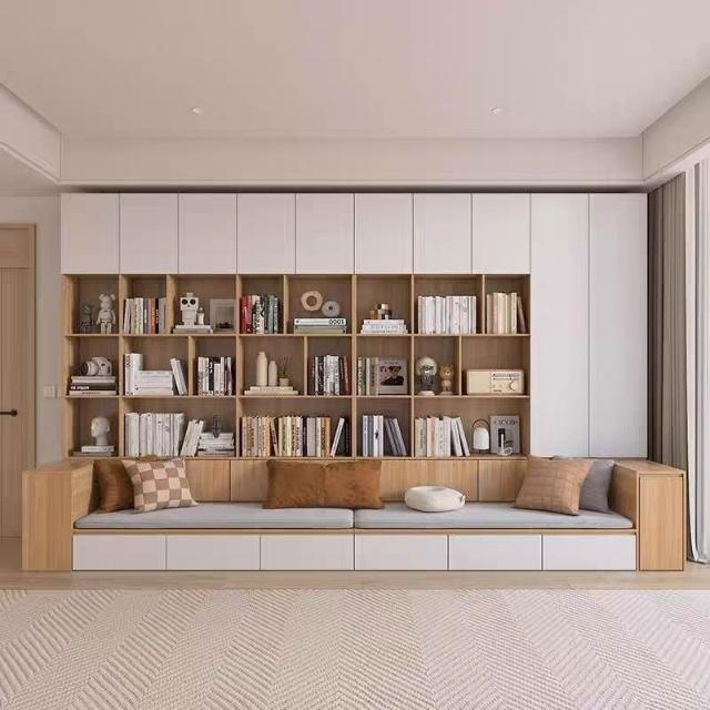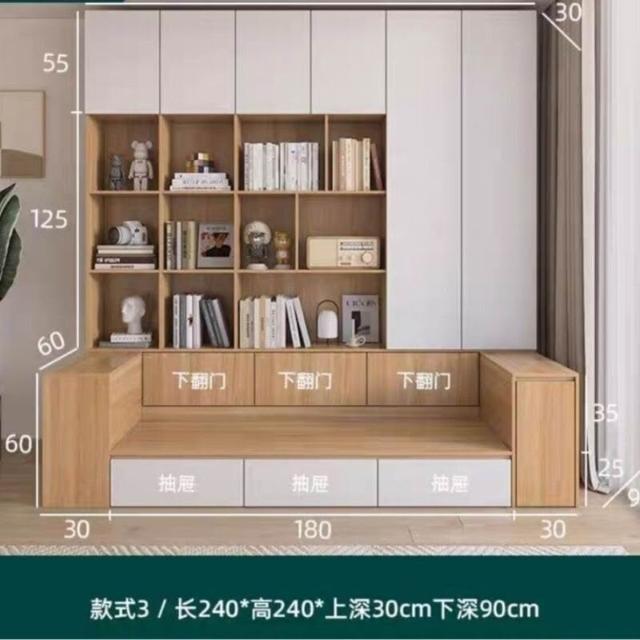 沙發書櫃一體靠墻櫃書櫥組合多功能家用滿墻卡座書架背景儲物櫃