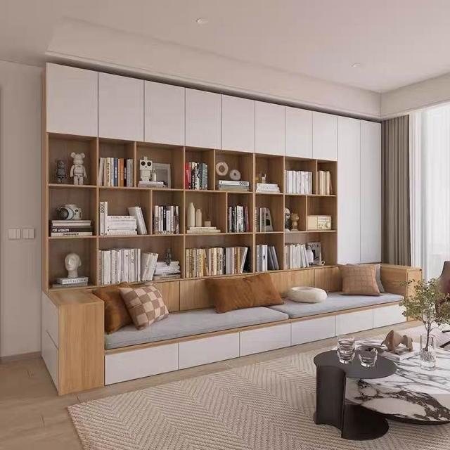 沙發書櫃一體靠墻櫃書櫥組合多功能家用滿墻卡座書架背景儲物櫃