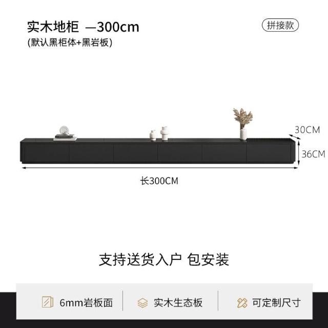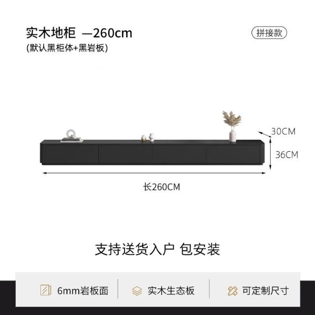 巖板黑色電視櫃落地茶幾組合客廳現代簡約小戶型高款實木電視機櫃