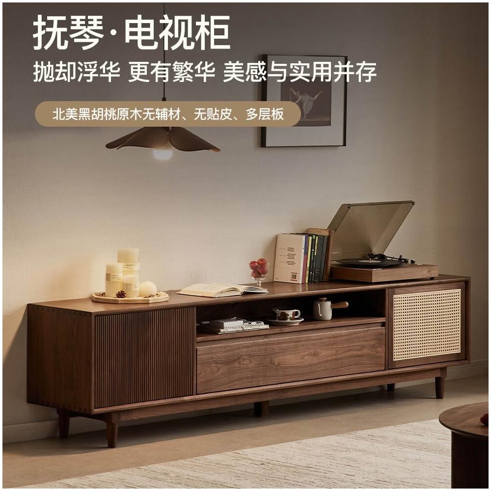 黑胡桃木電視櫃櫻桃木白蠟木白橡木復古實木地櫃客廳收納櫃家用