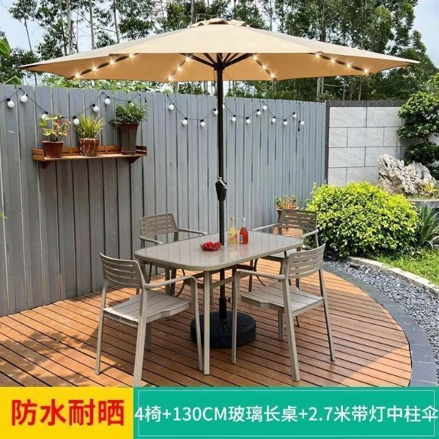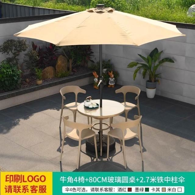 戶外桌椅帶傘組合庭院花園露天奶茶店咖啡廳外擺休閑太陽能遮陽傘