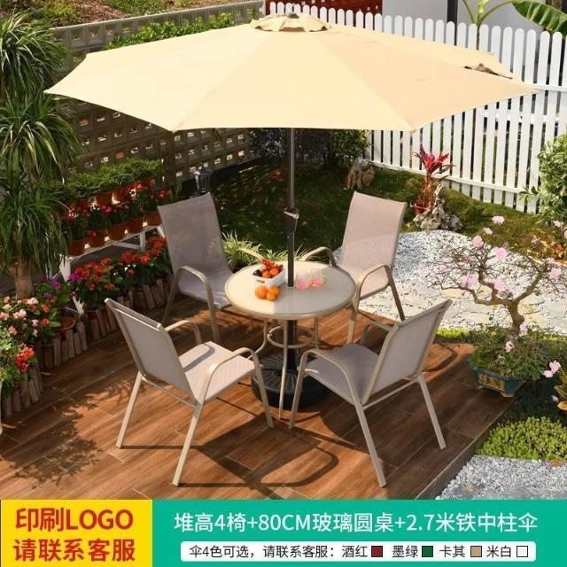 戶外桌椅帶傘組合庭院花園露天奶茶店咖啡廳外擺休閑太陽能遮陽傘