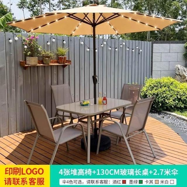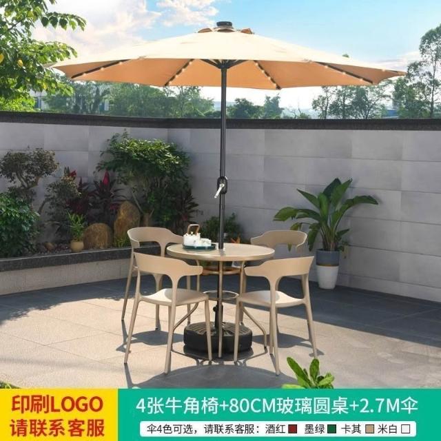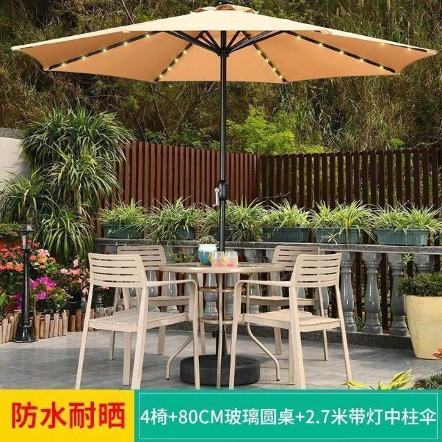 戶外桌椅帶傘組合庭院花園露天奶茶店咖啡廳外擺休閑太陽能遮陽傘