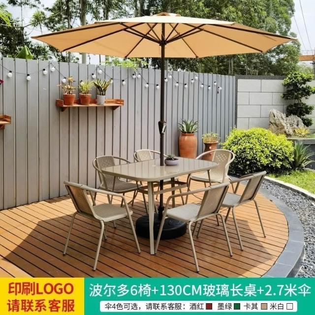 戶外桌椅帶傘組合庭院花園露天奶茶店咖啡廳外擺休閑太陽能遮陽傘