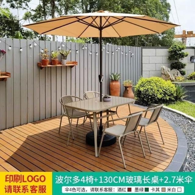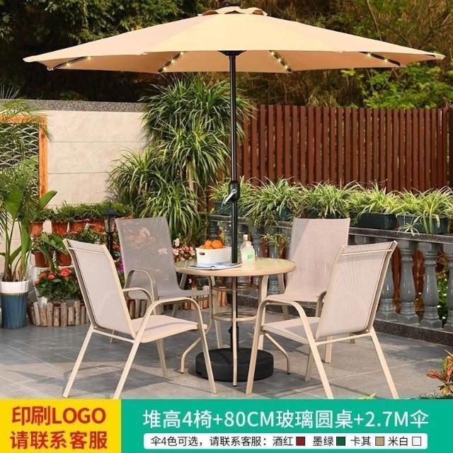 戶外桌椅帶傘組合庭院花園露天奶茶店咖啡廳外擺休閑太陽能遮陽傘
