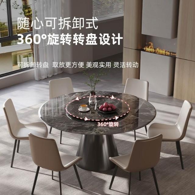 輕奢超晶石餐桌意式天然大理石飯桌家用大小戶型微晶石圓形餐桌椅