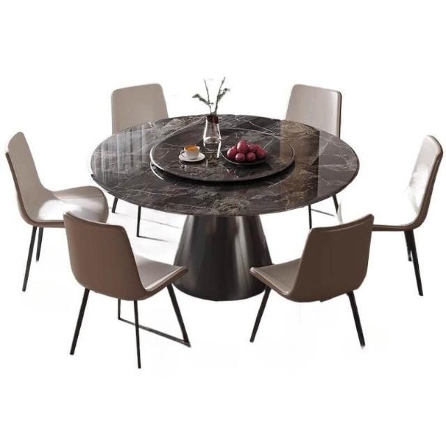 輕奢超晶石餐桌意式天然大理石飯桌家用大小戶型微晶石圓形餐桌椅