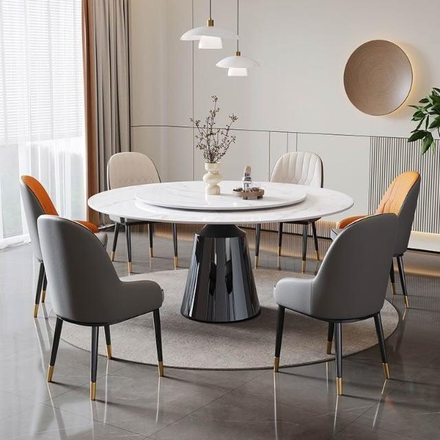 輕奢超晶石餐桌意式天然大理石飯桌家用大小戶型微晶石圓形餐桌椅