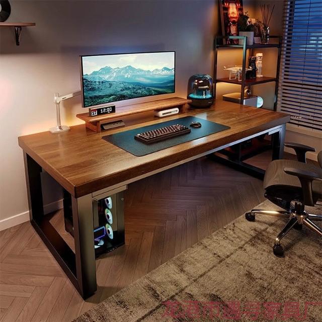 實木電腦桌臺式家用電競桌子臥室長方形學生書桌寫字桌雙人辦公桌