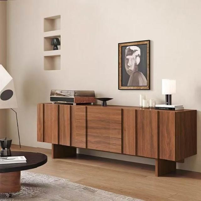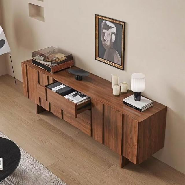 中古風實木電視櫃小戶型復古電視機櫃落地儲物櫃一體客廳家用地櫃