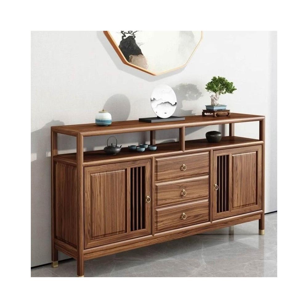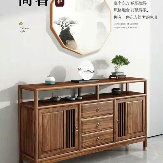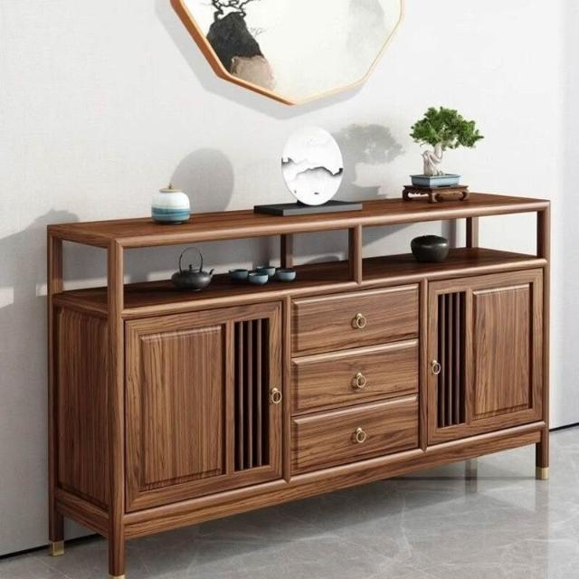 新中式餐邊櫃玄關櫃酒櫃茶水櫃客廳實木靠墻櫃榆木儲物黑胡桃木色