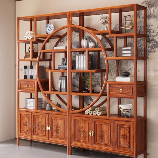 實木博古架新中式茶桌置物架茶室茶具茶葉收納櫃臺式擺件展示架子