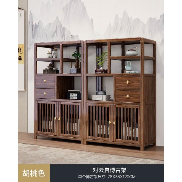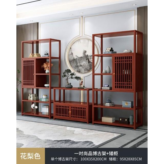實木博古架新中式茶桌置物架茶室茶具茶葉收納櫃臺式擺件展示架子