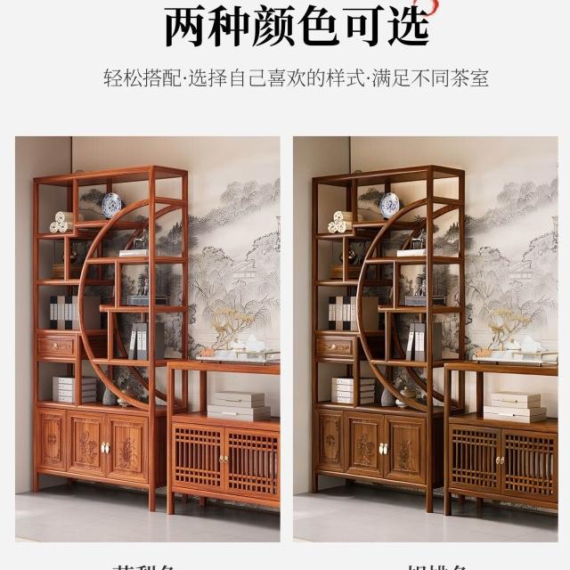 實木博古架新中式茶桌置物架茶室茶具茶葉收納櫃臺式擺件展示架子