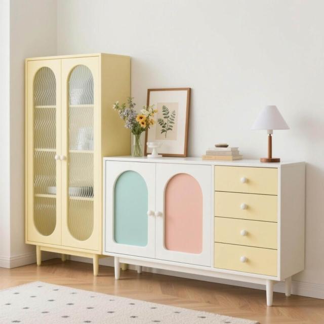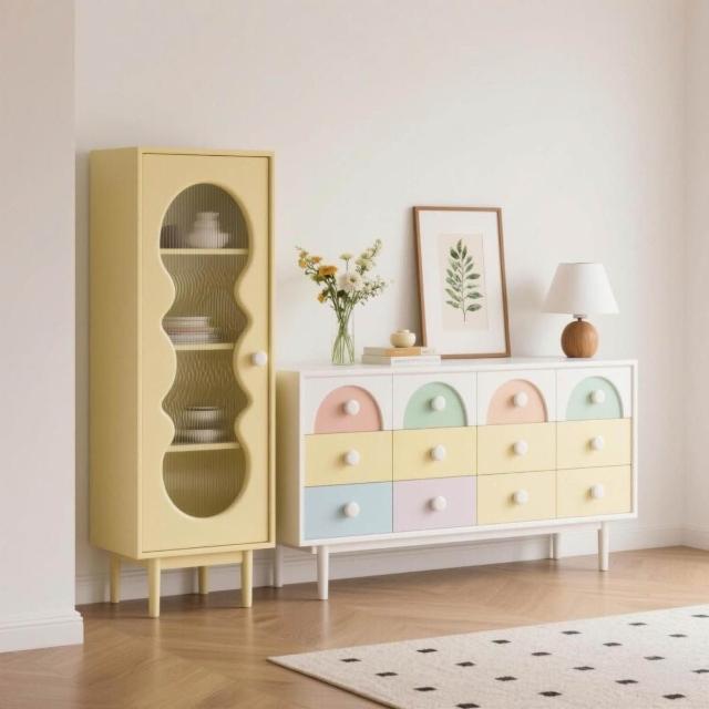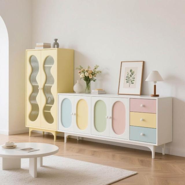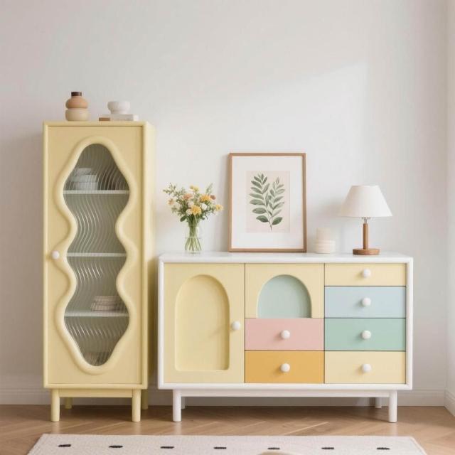 定製法式奶油風實木餐邊櫃客廳靠墻儲物櫃家用收納置物多巴胺跨境
