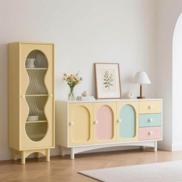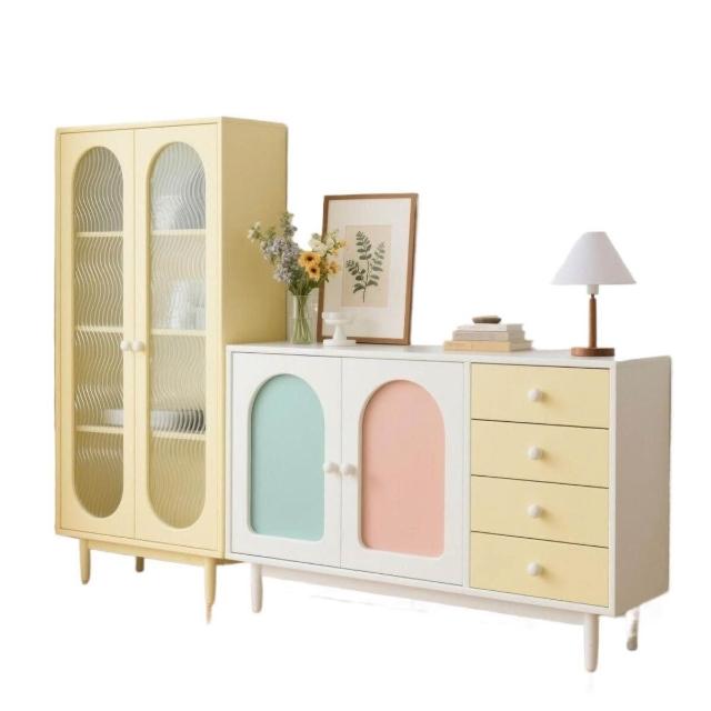 定製法式奶油風實木餐邊櫃客廳靠墻儲物櫃家用收納置物多巴胺跨境