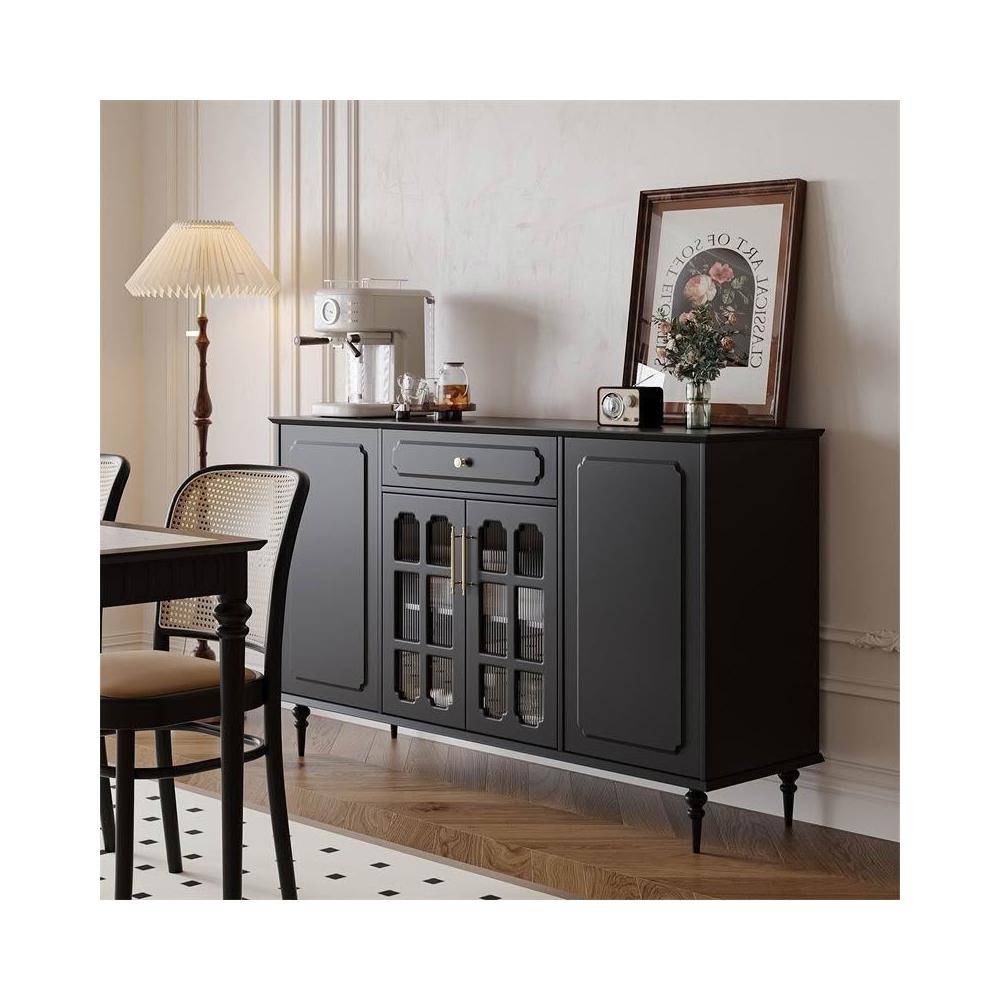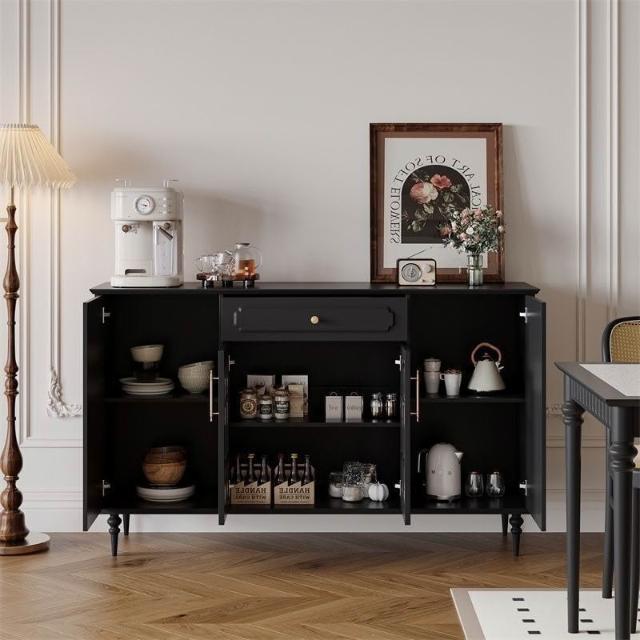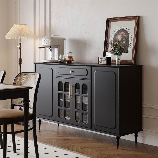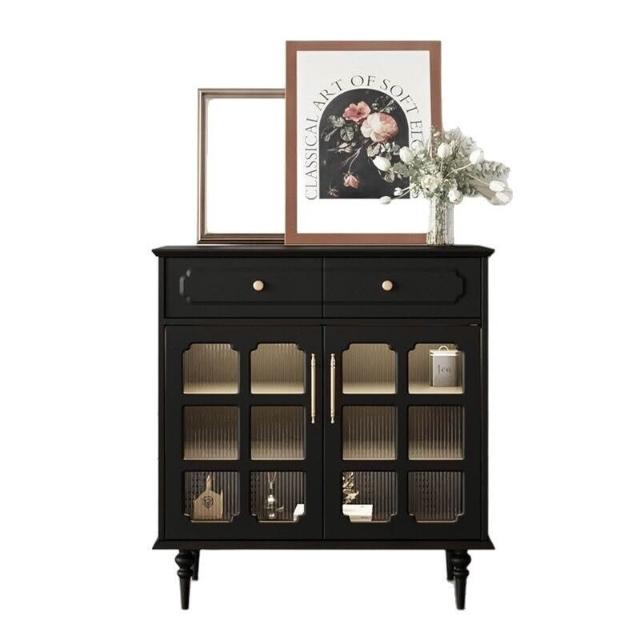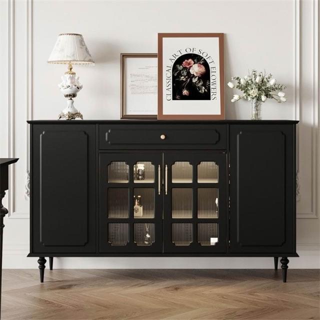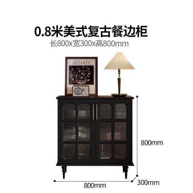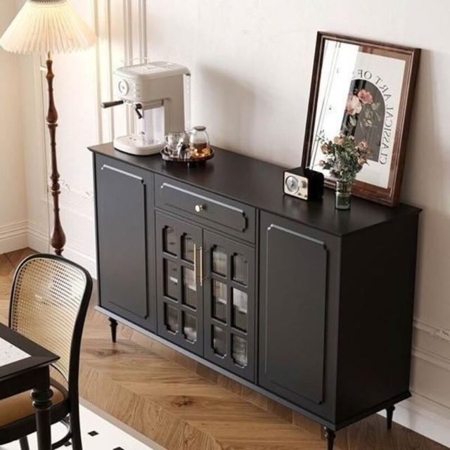 美式復古餐邊櫃餐廳現代簡約儲物櫃歺餐邊櫃黑色中古多功能茶水櫃