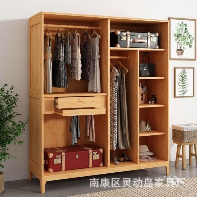 北歐風橡膠木實木衣櫃簡易二門三門四門對開門簡約小戶型收納衣櫥