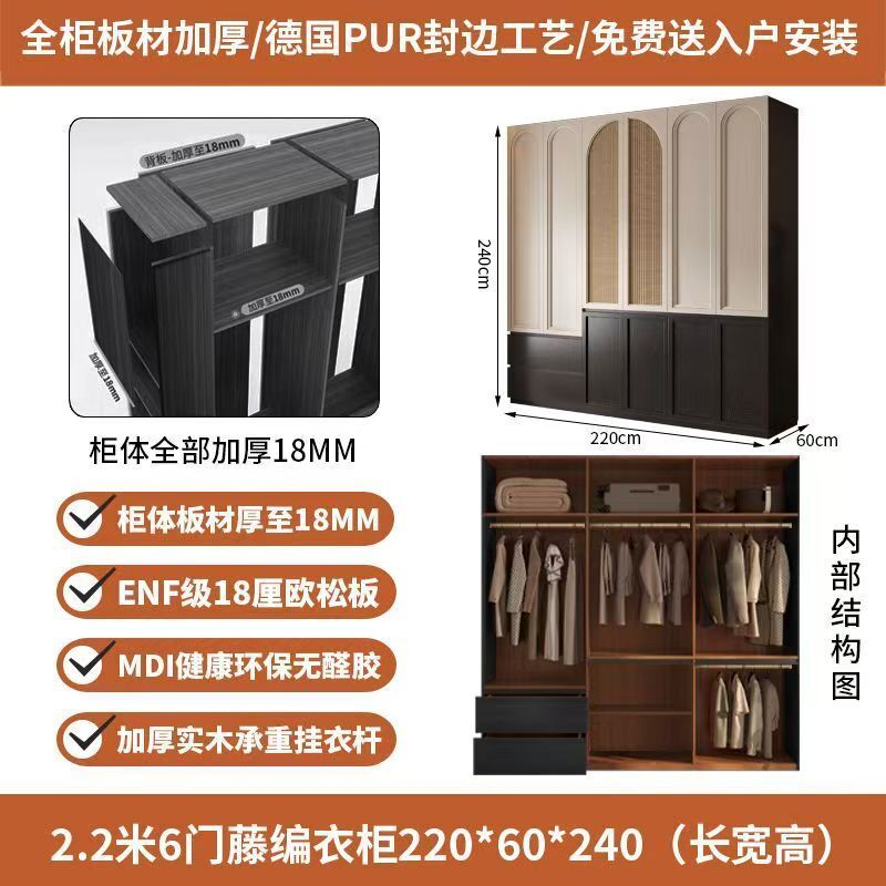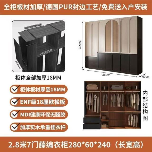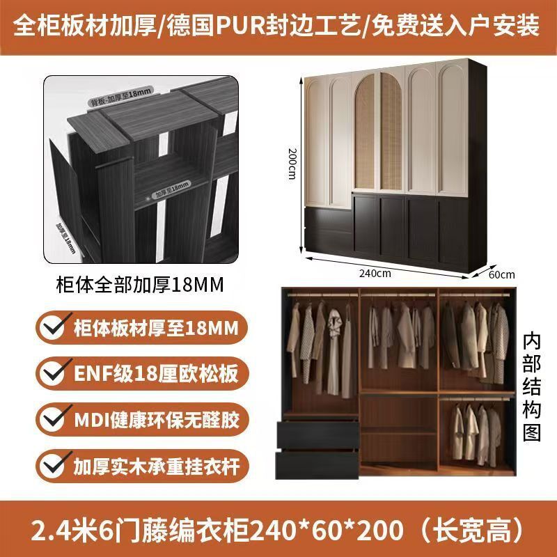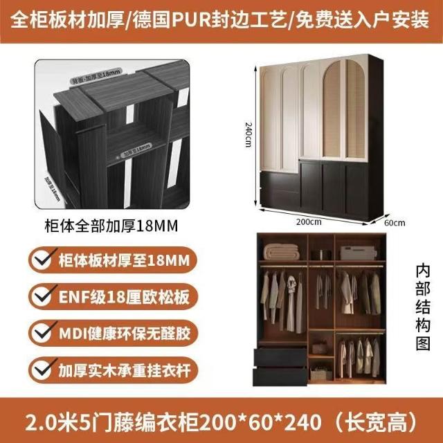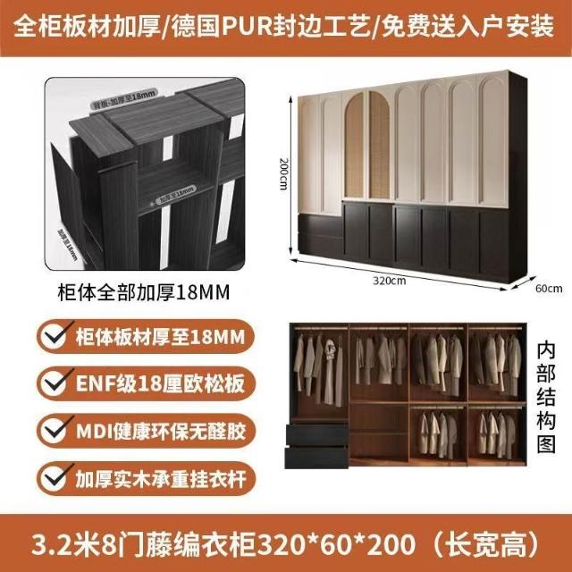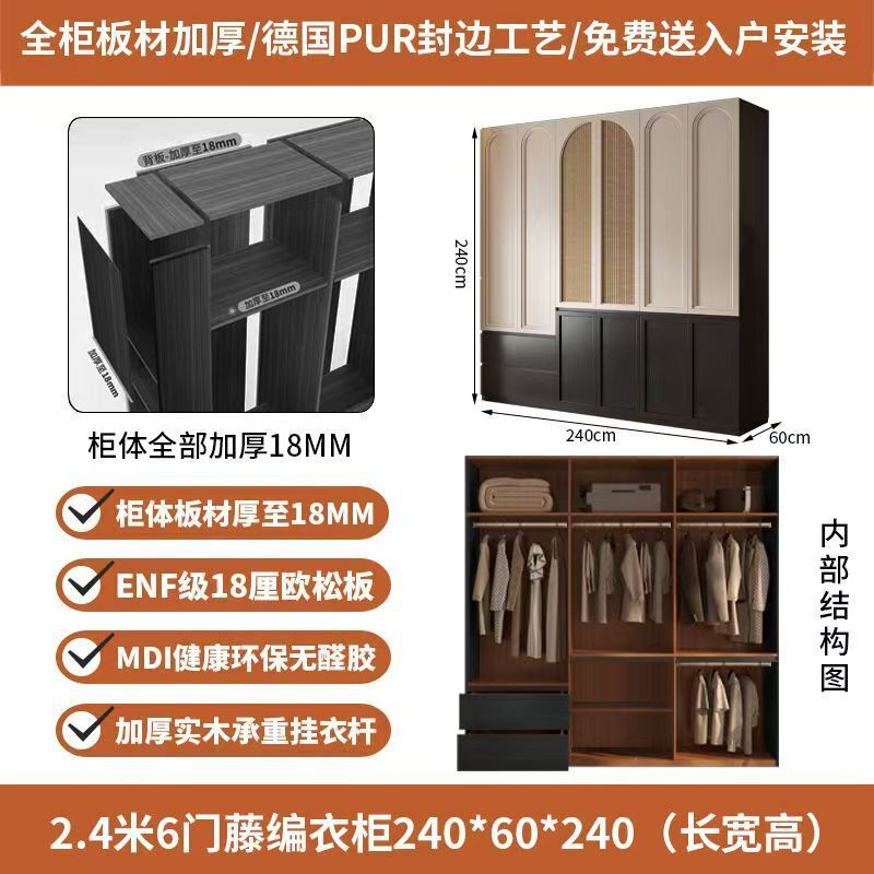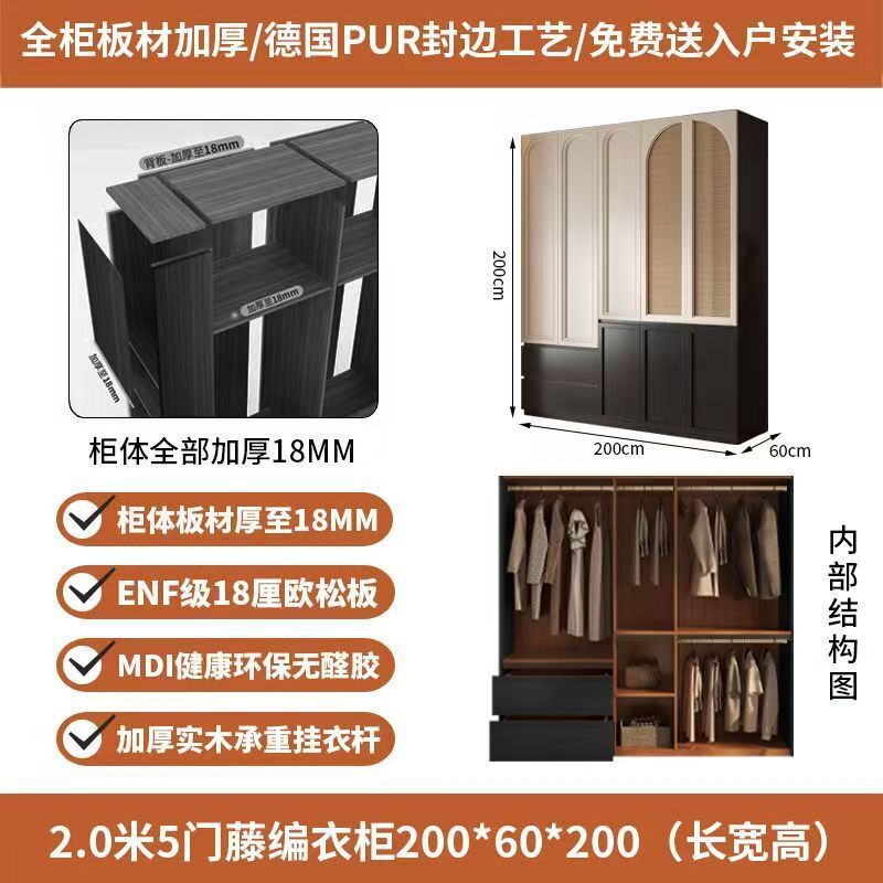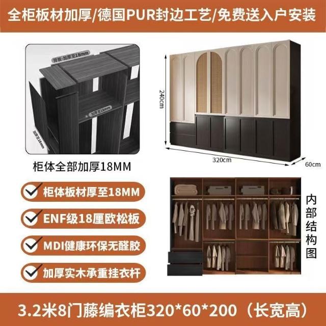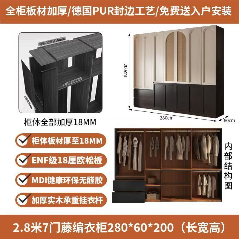 中古分段式實木藤編衣櫃一櫃到頂免拉手現代簡約ENF歐松板大衣櫥