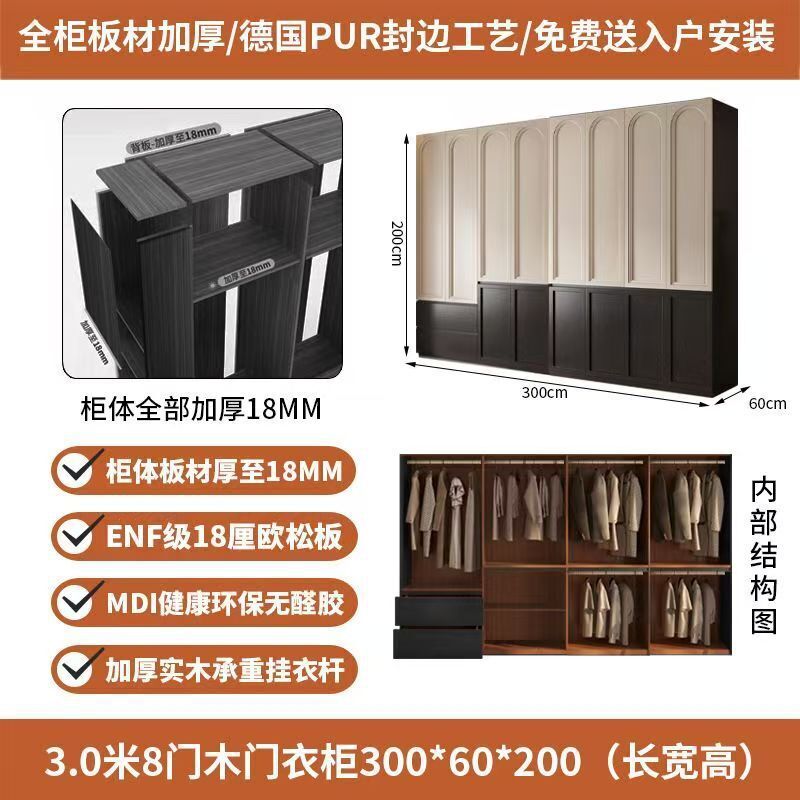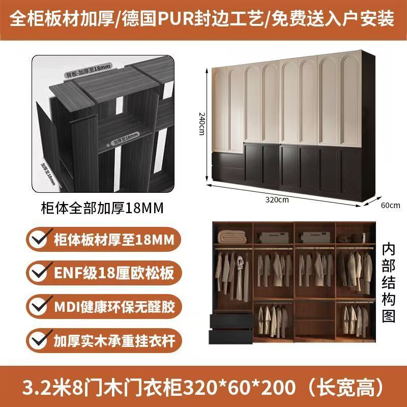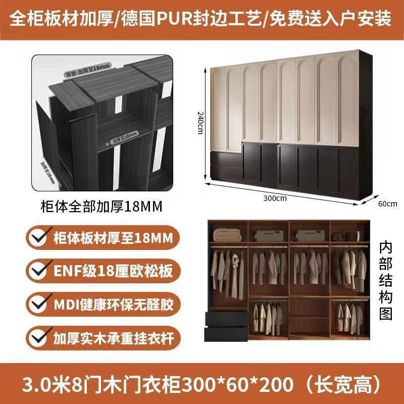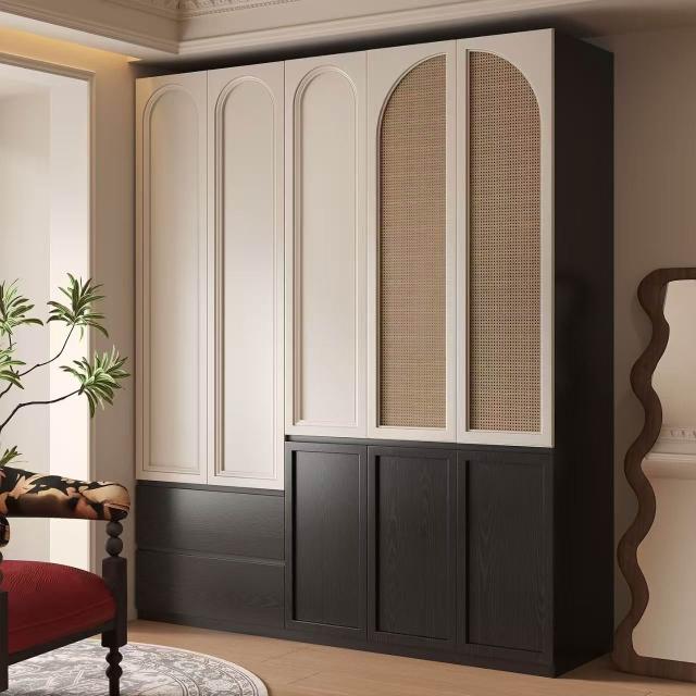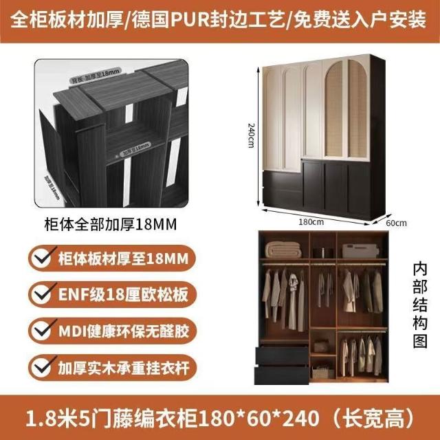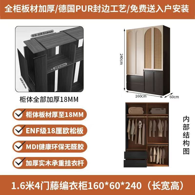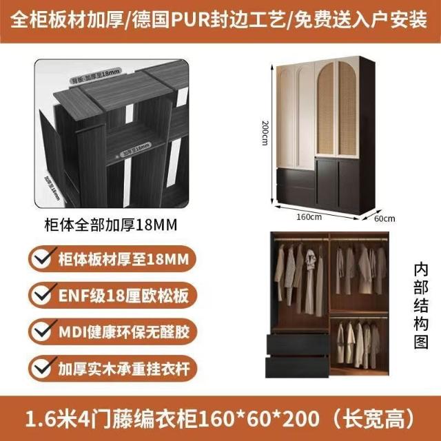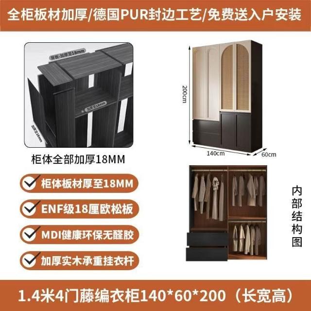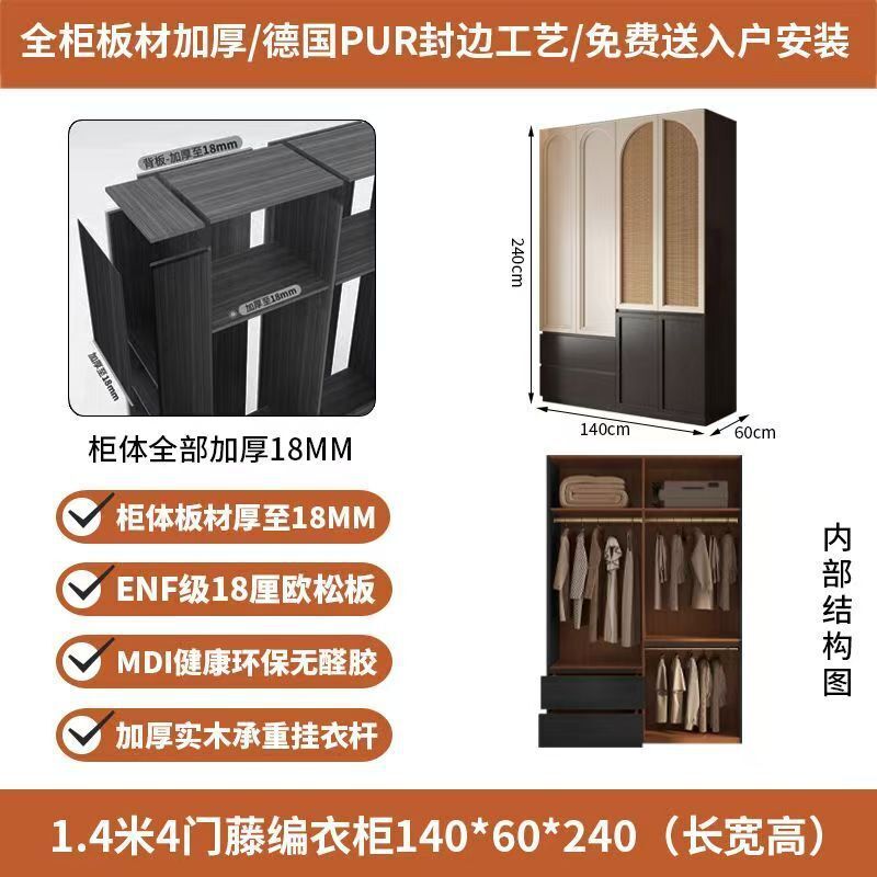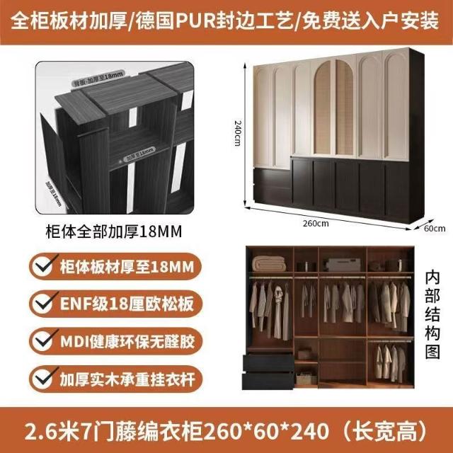 中古分段式實木藤編衣櫃一櫃到頂免拉手現代簡約ENF歐松板大衣櫥