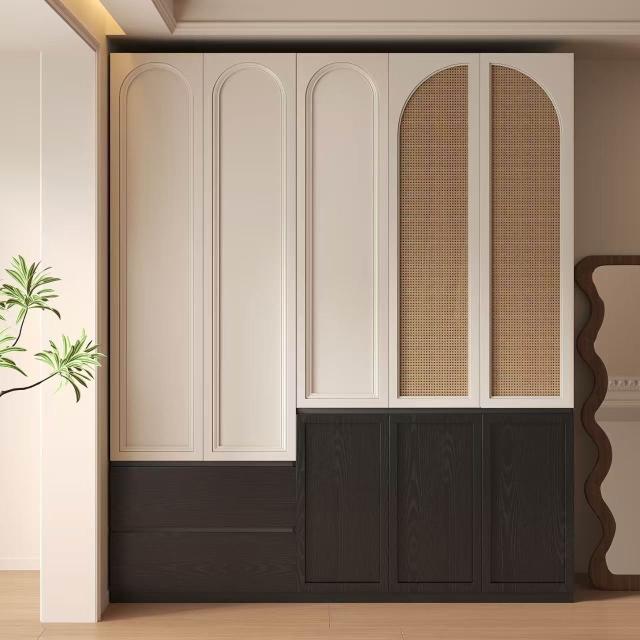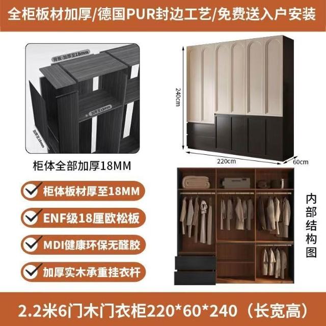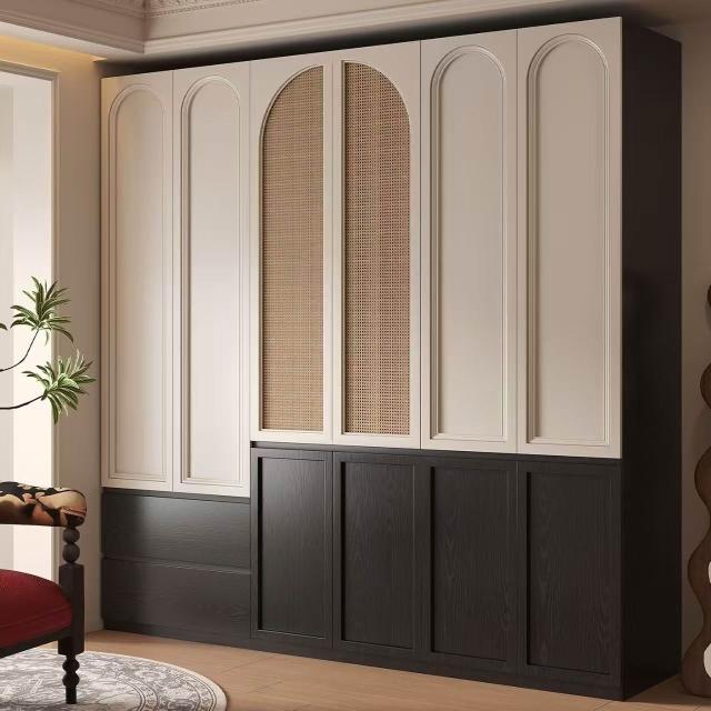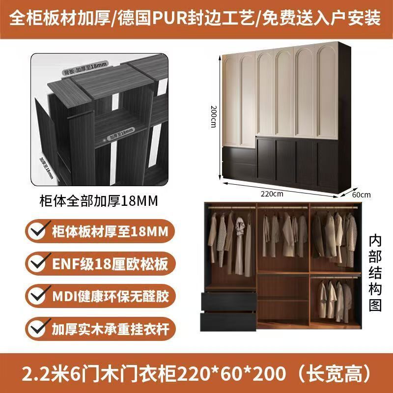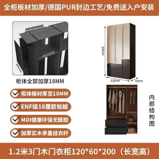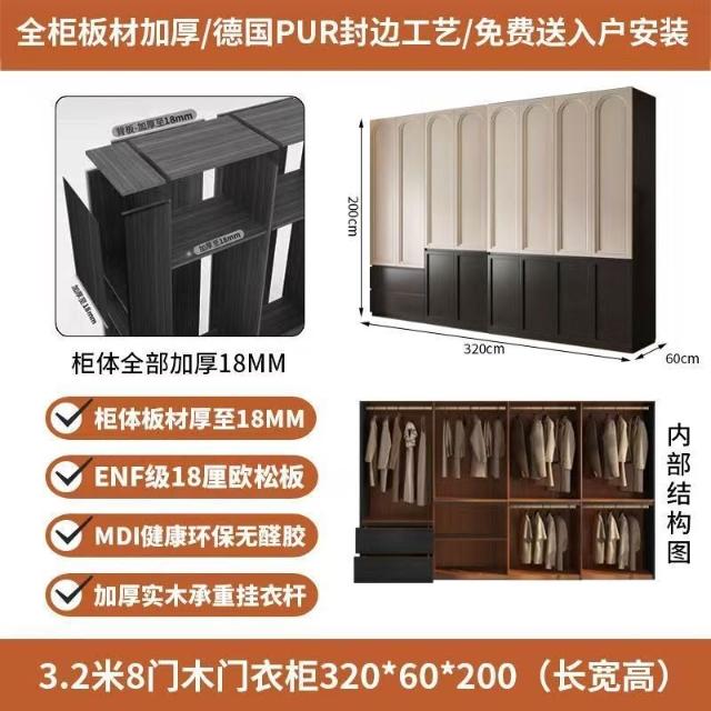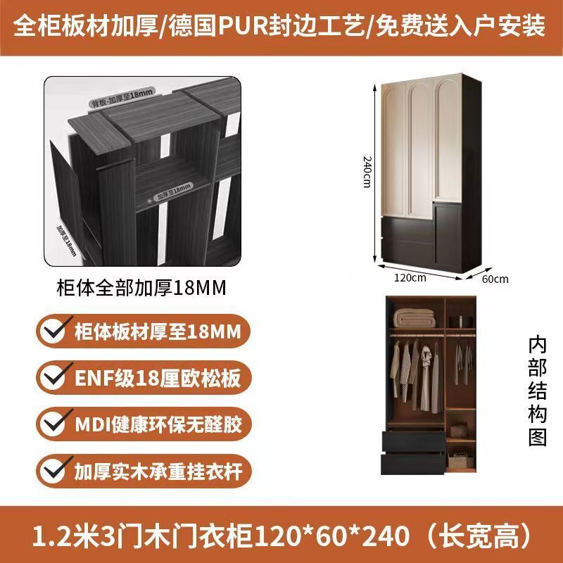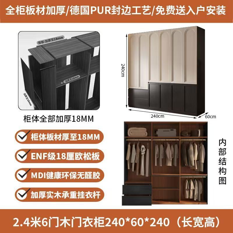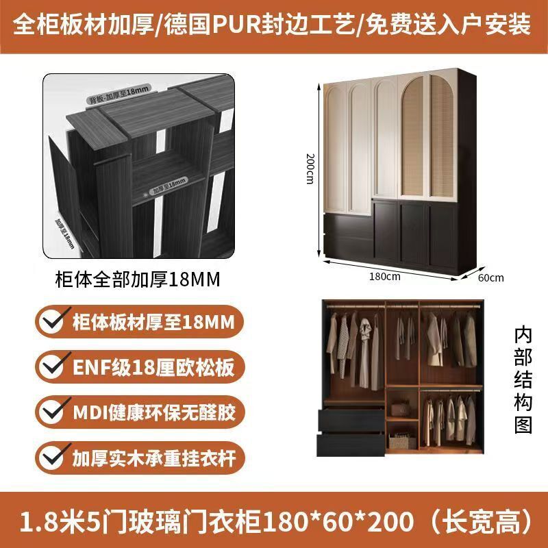 中古分段式實木藤編衣櫃一櫃到頂免拉手現代簡約ENF歐松板大衣櫥