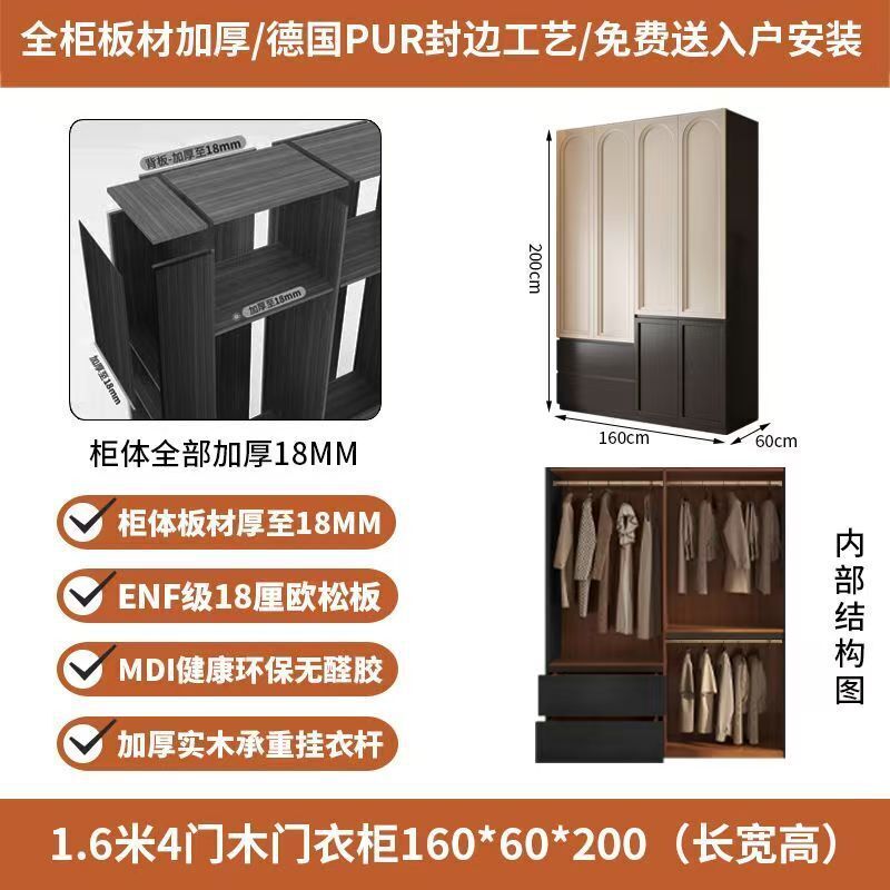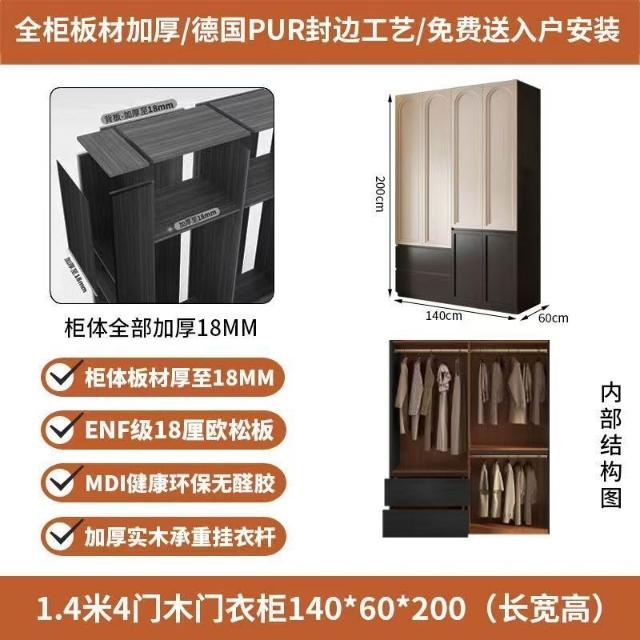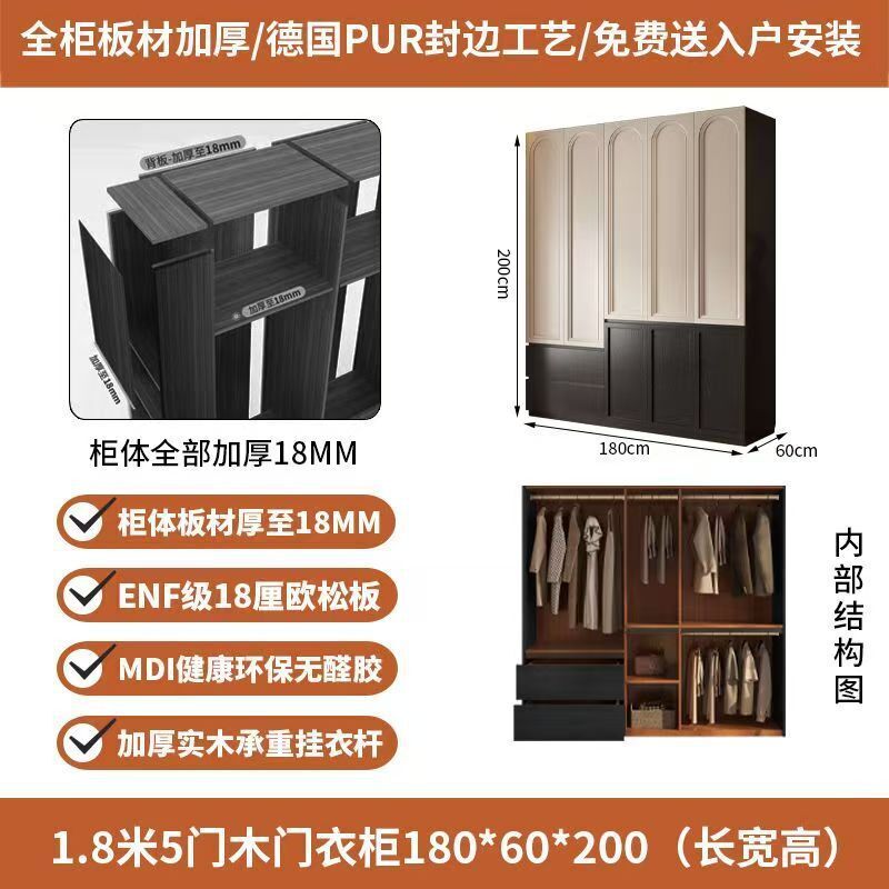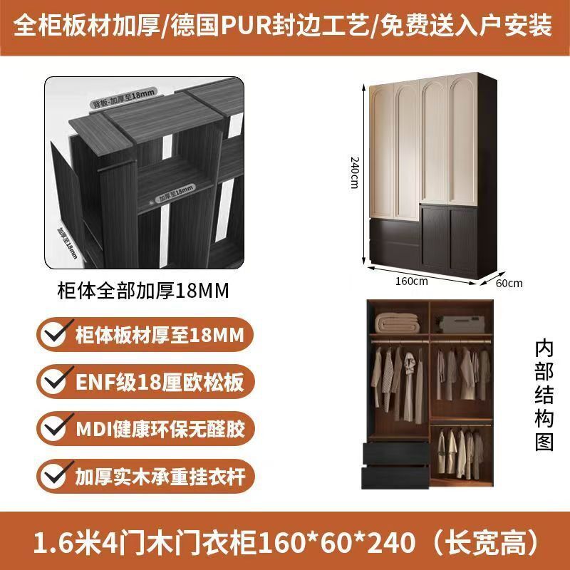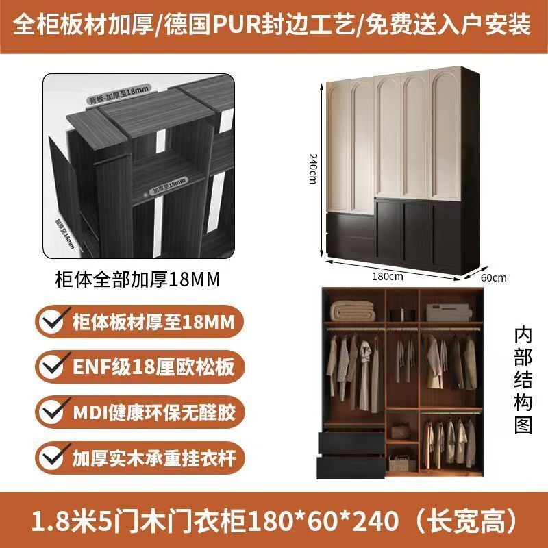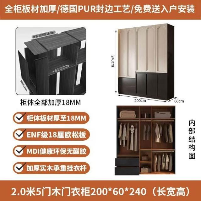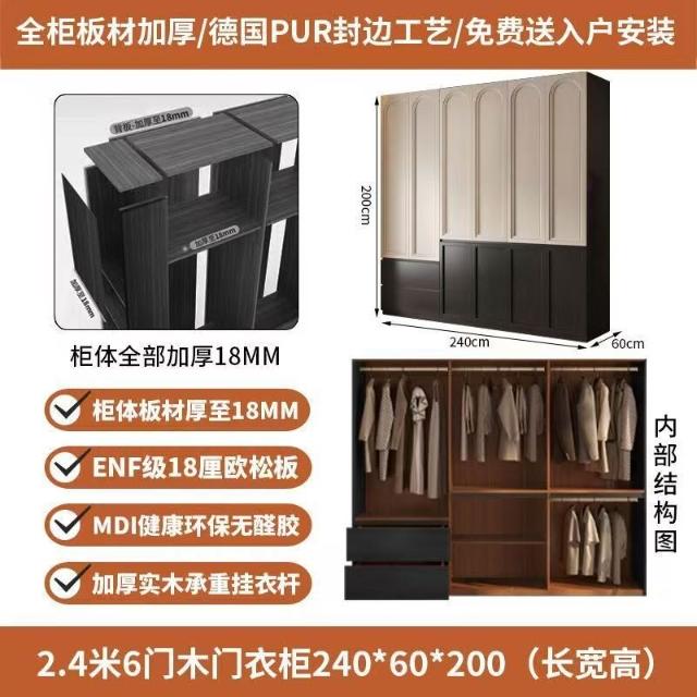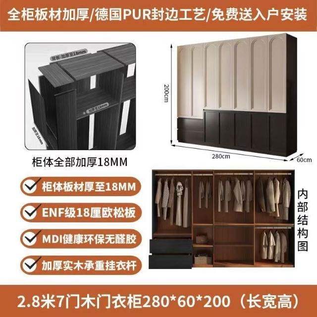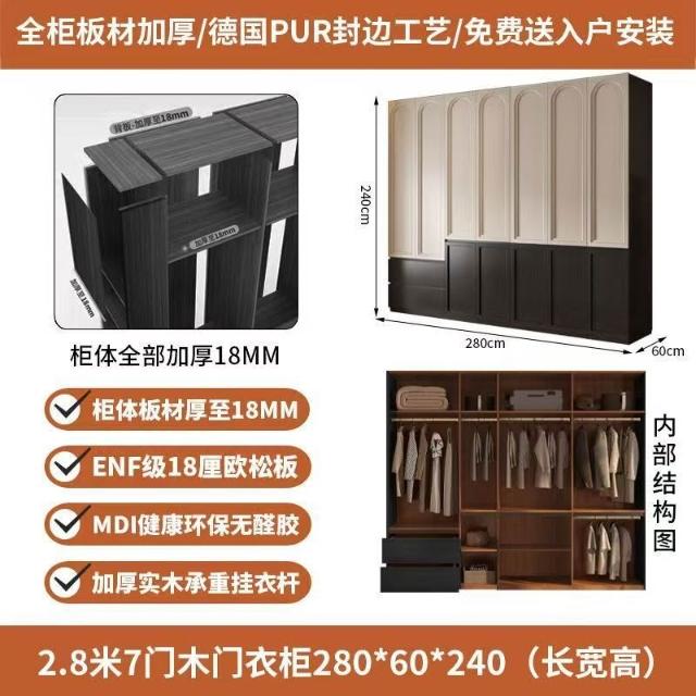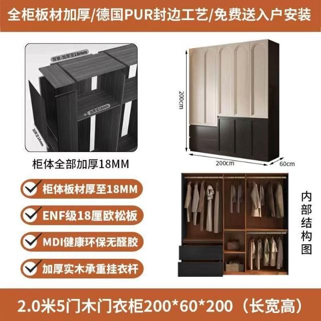 中古分段式實木藤編衣櫃一櫃到頂免拉手現代簡約ENF歐松板大衣櫥