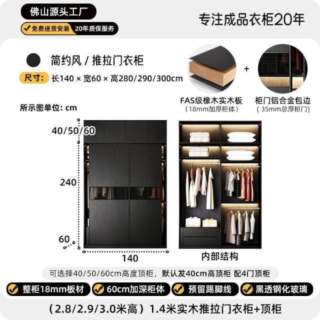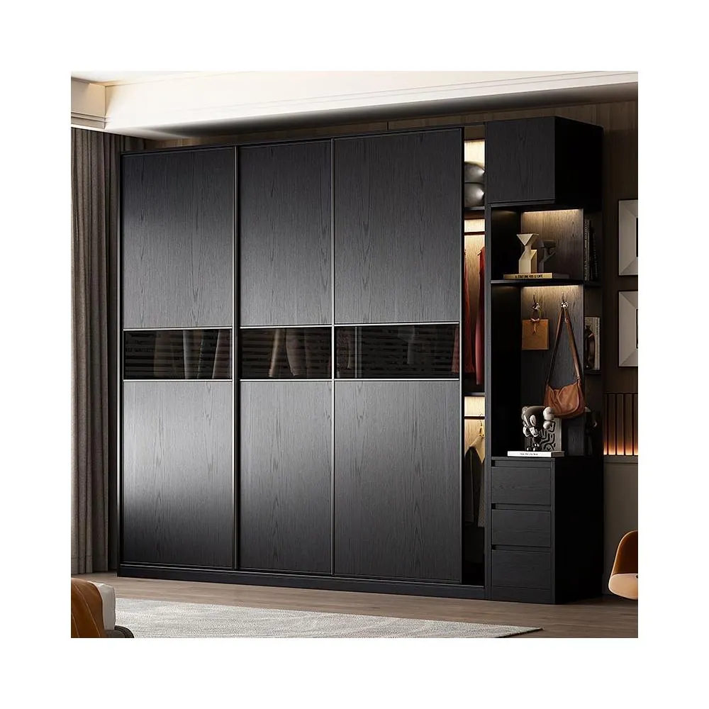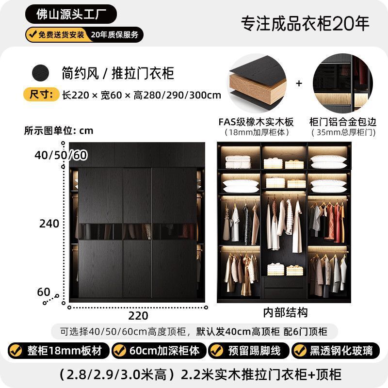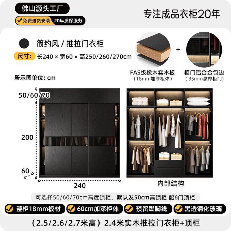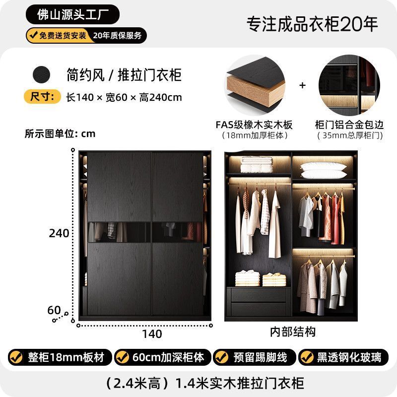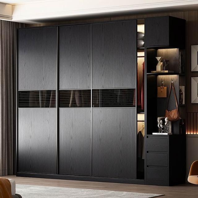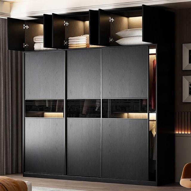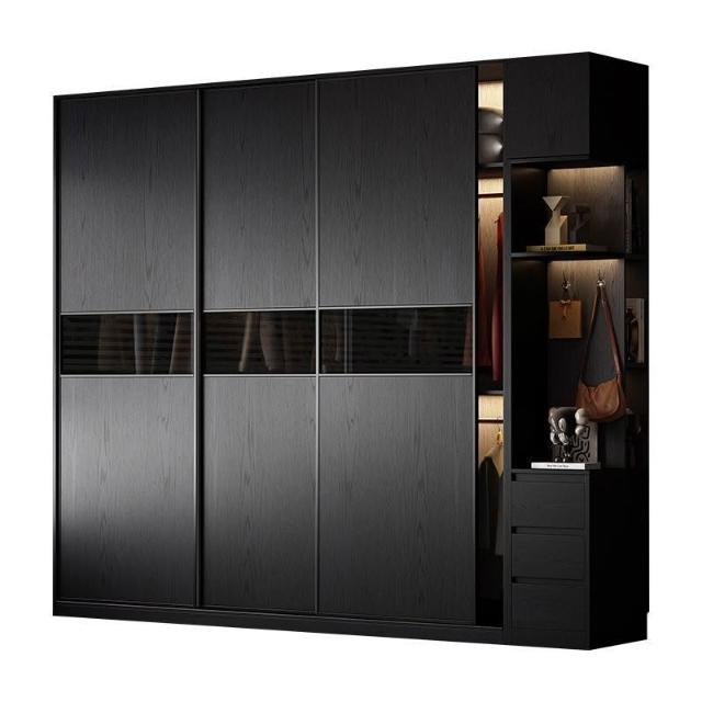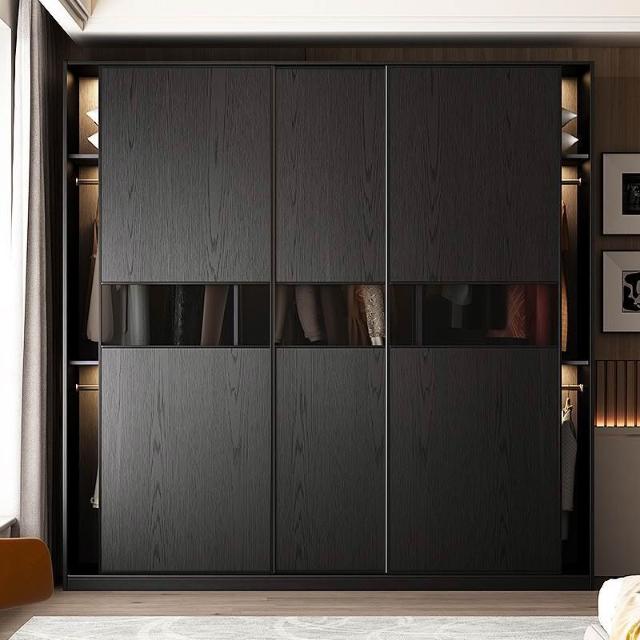 2025新款推拉門衣櫃意式極簡黑色玻璃門現代簡約高級收納儲物衣櫥