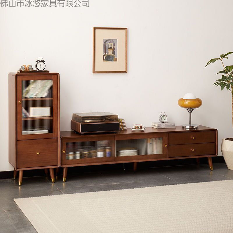 北歐實木電視櫃茶幾組合客廳組合墻櫃現代簡約小戶型地櫃電視機櫃