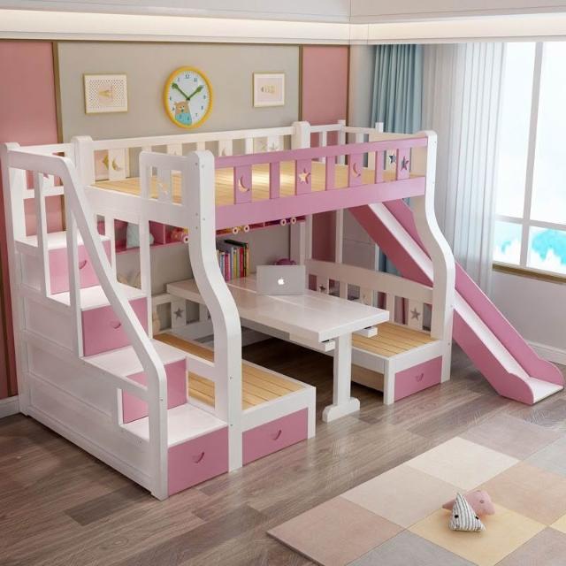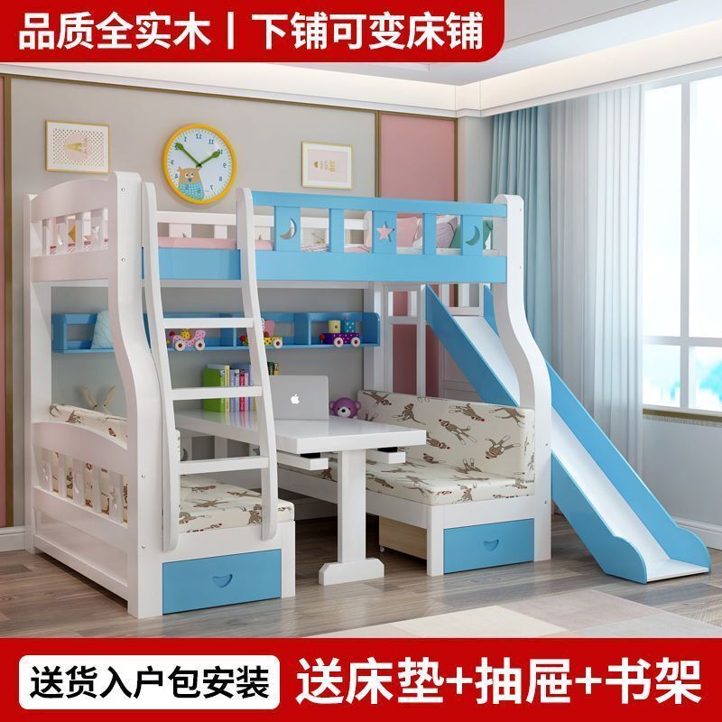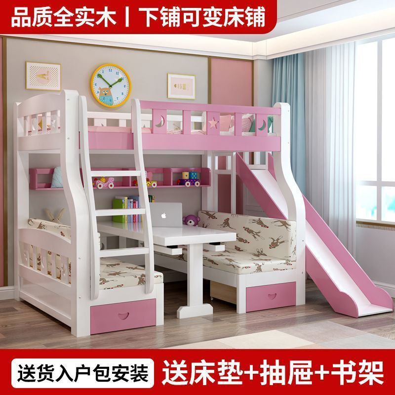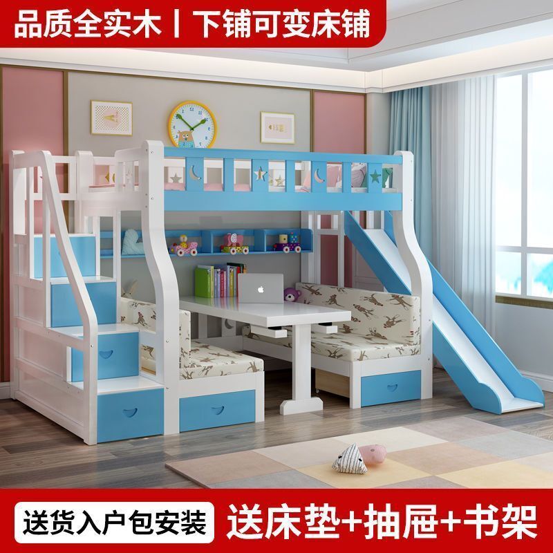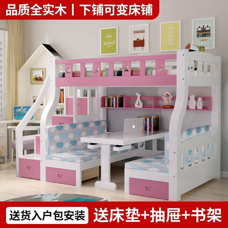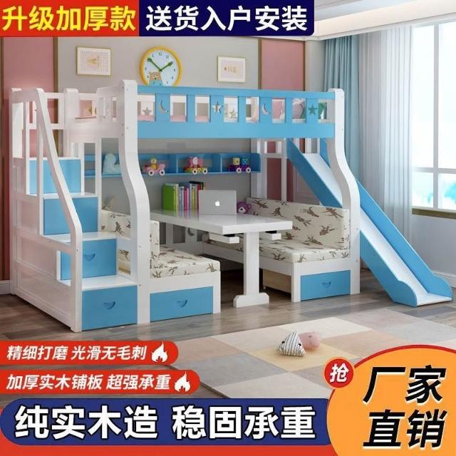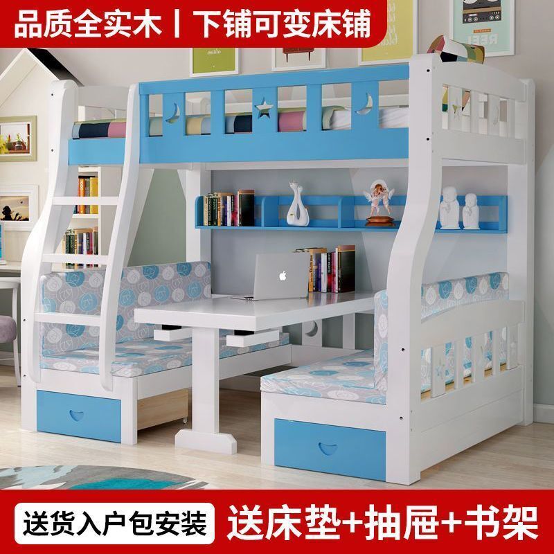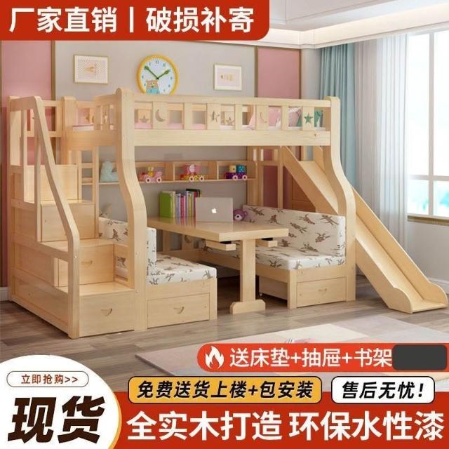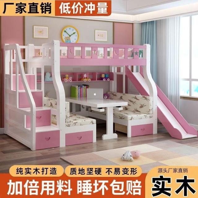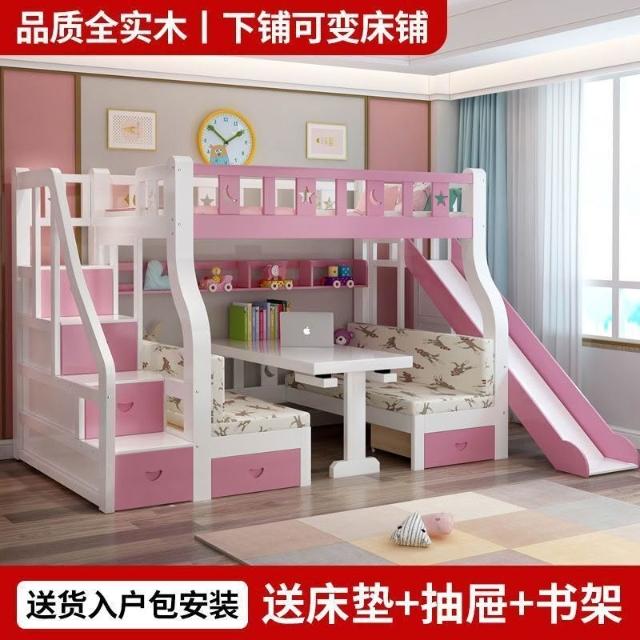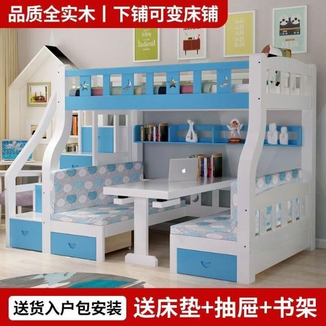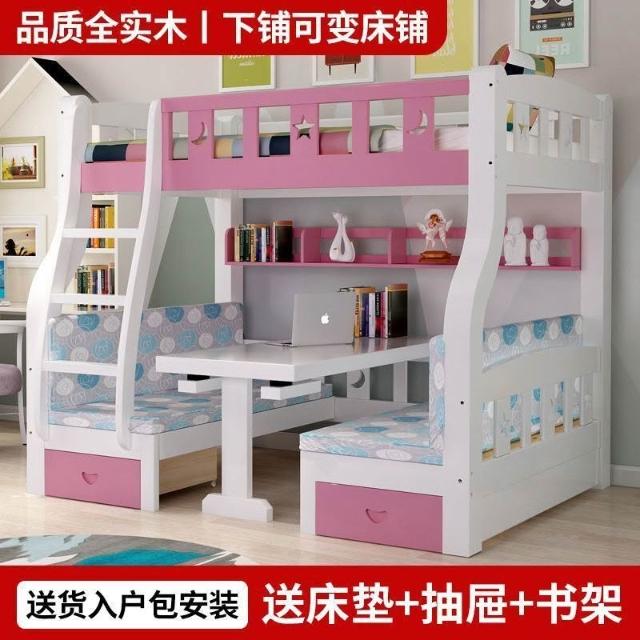 實木子母床上下床一體床上床下桌上下鋪床雙層成人帶二層組裝式
