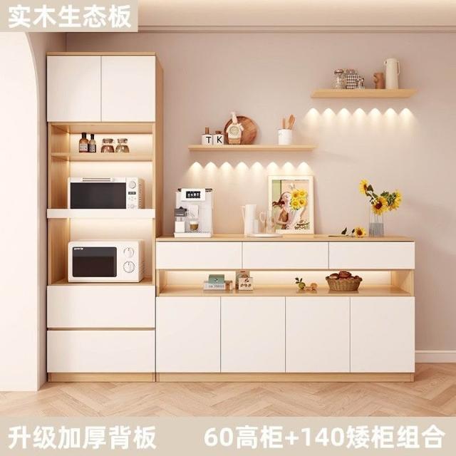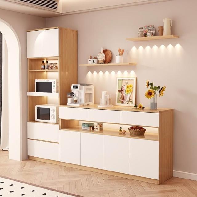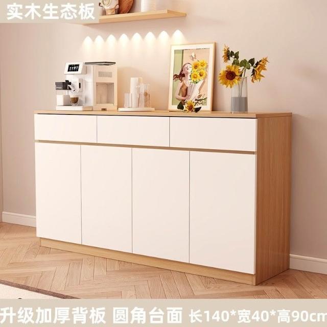 實木餐邊櫃一體靠墻原木奶油風客廳家用現代簡約櫥櫃儲物高櫃酒櫃