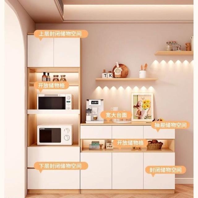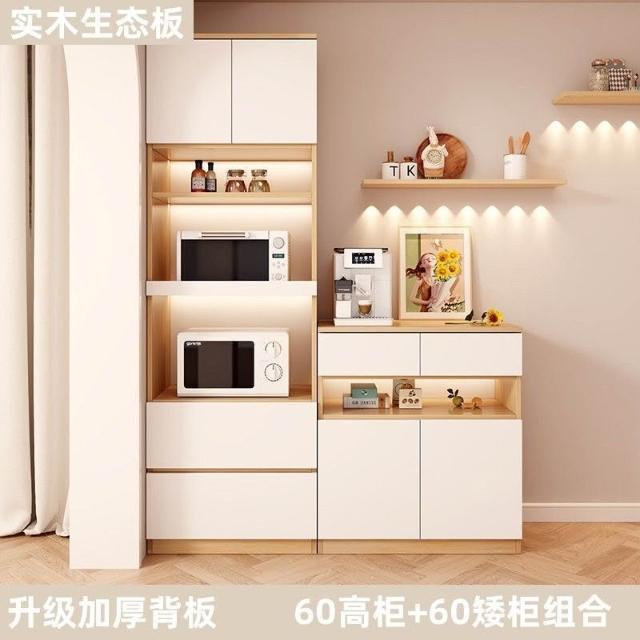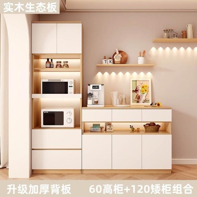 實木餐邊櫃一體靠墻原木奶油風客廳家用現代簡約櫥櫃儲物高櫃酒櫃