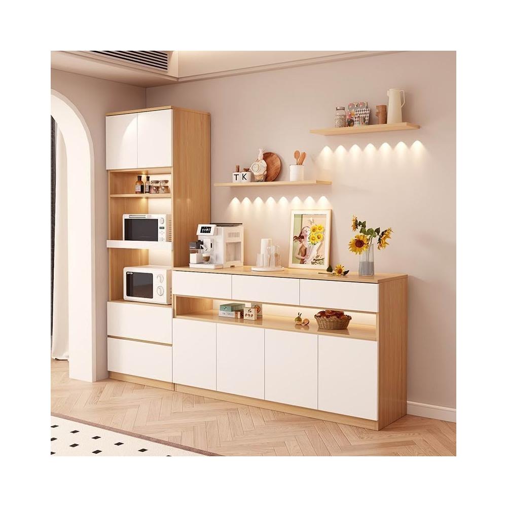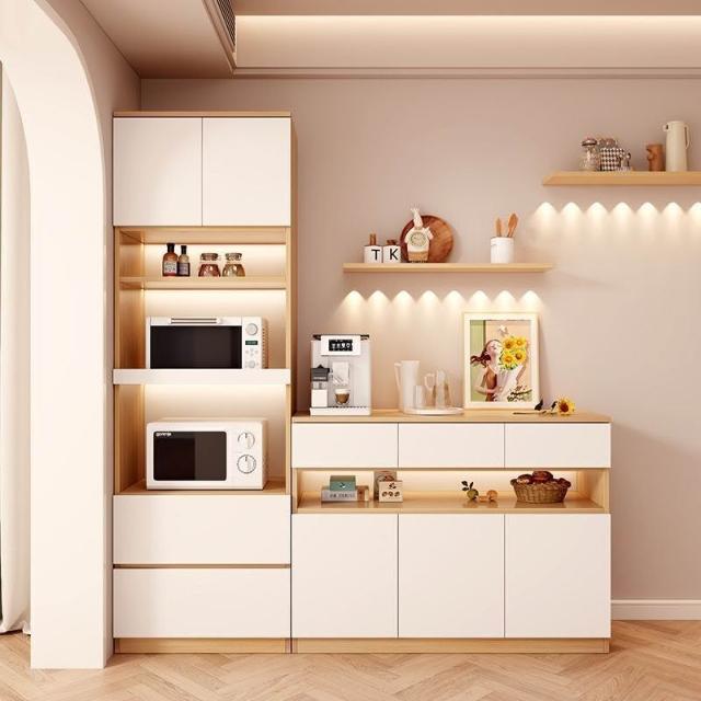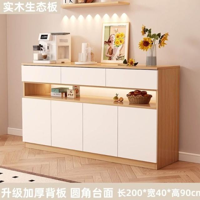 實木餐邊櫃一體靠墻原木奶油風客廳家用現代簡約櫥櫃儲物高櫃酒櫃