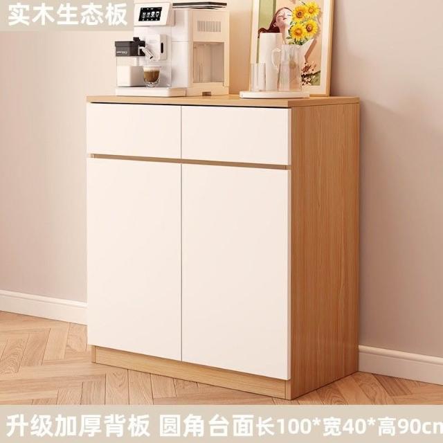 實木餐邊櫃一體靠墻原木奶油風客廳家用現代簡約櫥櫃儲物高櫃酒櫃