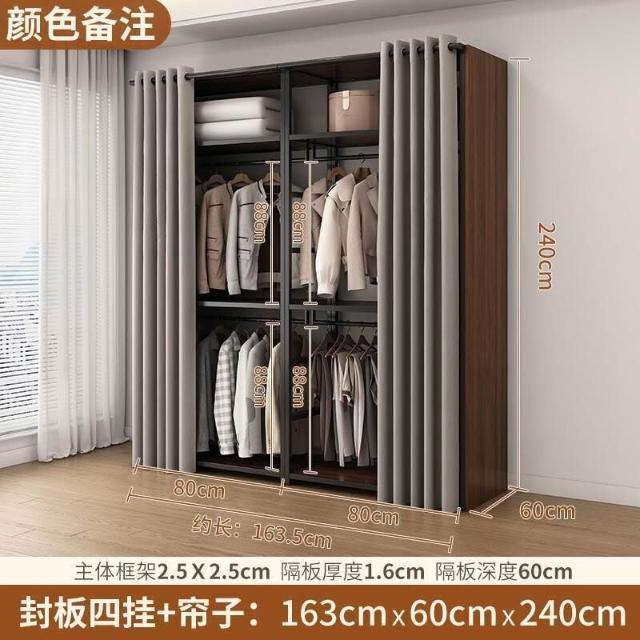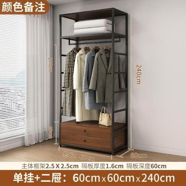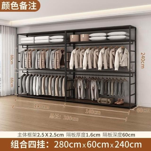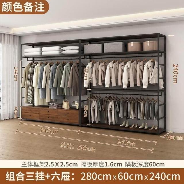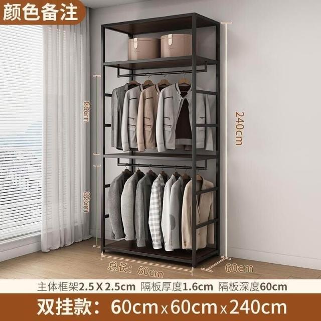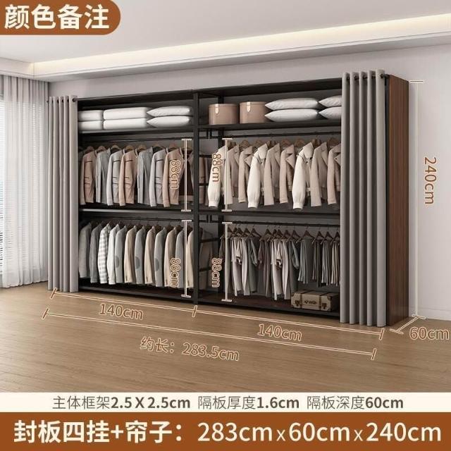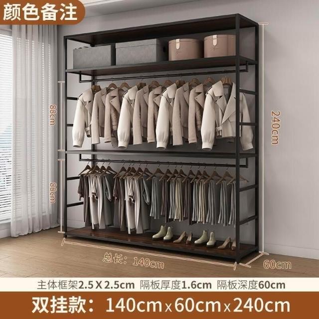 衣帽間自製架子組裝開放式衣櫃鐵藝雙層金屬框架臥室落地掛衣帽架