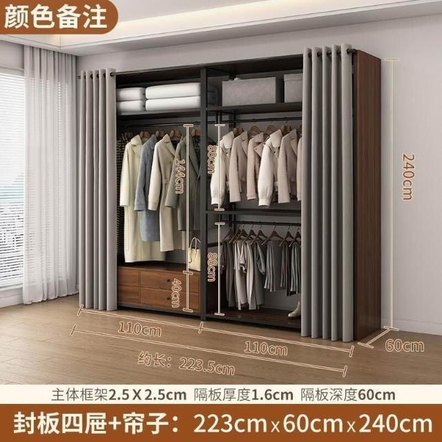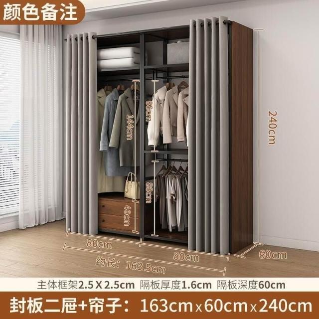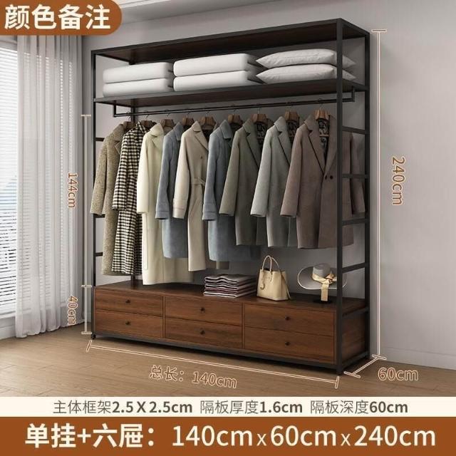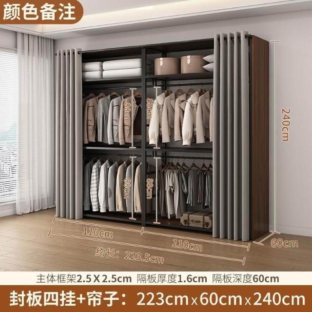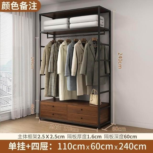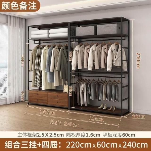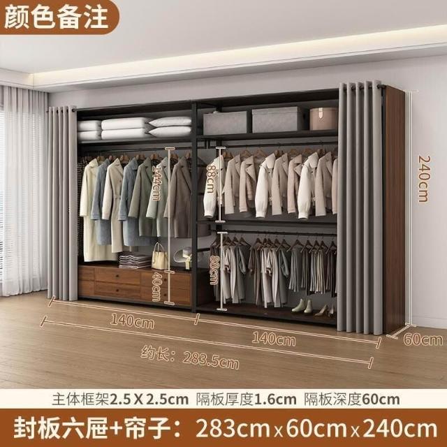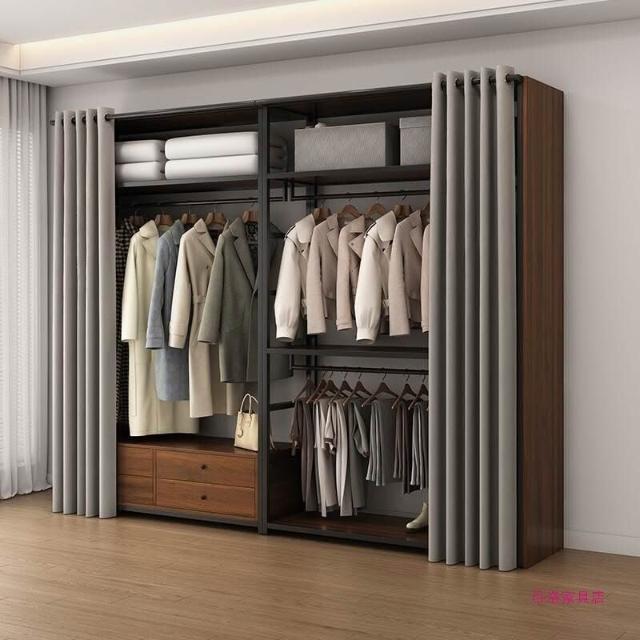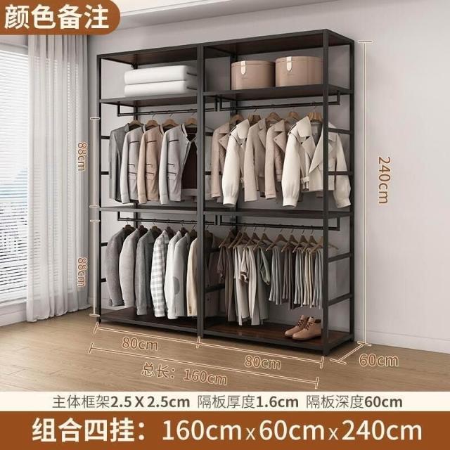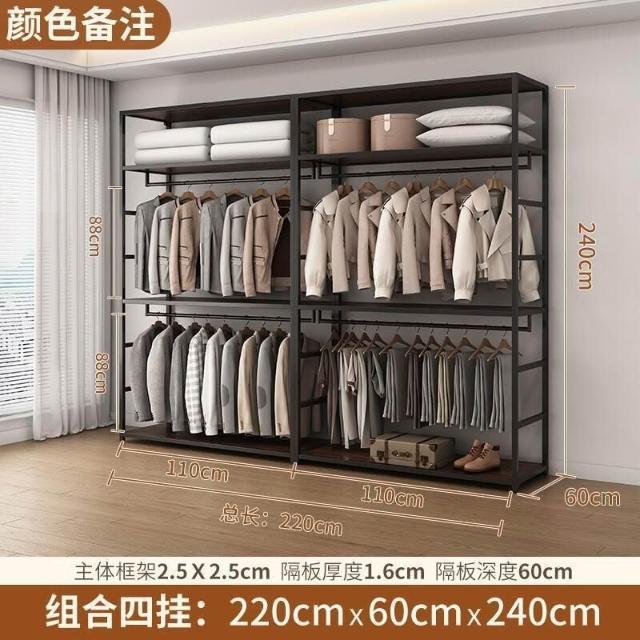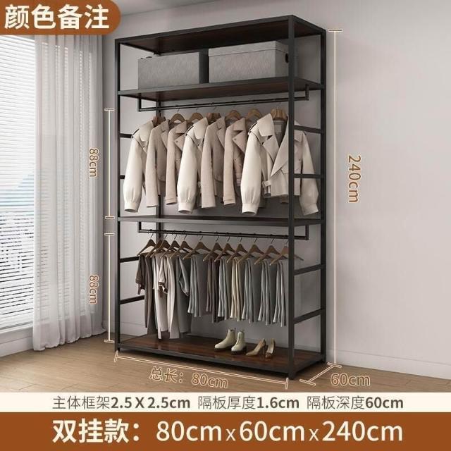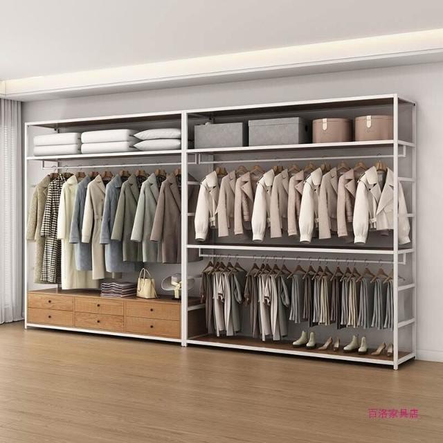 衣帽間自製架子組裝開放式衣櫃鐵藝雙層金屬框架臥室落地掛衣帽架