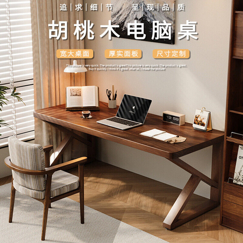 南美黑胡桃木電腦桌中古風實木學習書桌臺式家用臥室工作辦公桌子