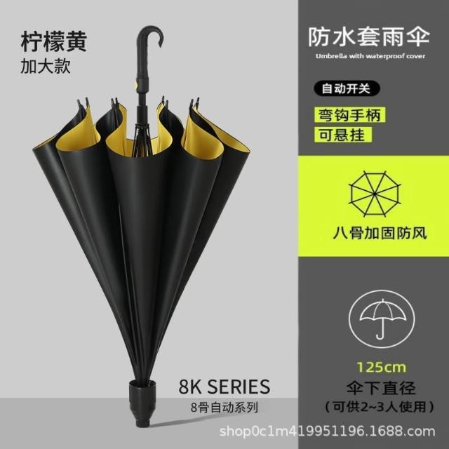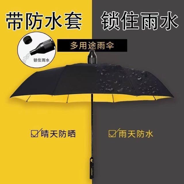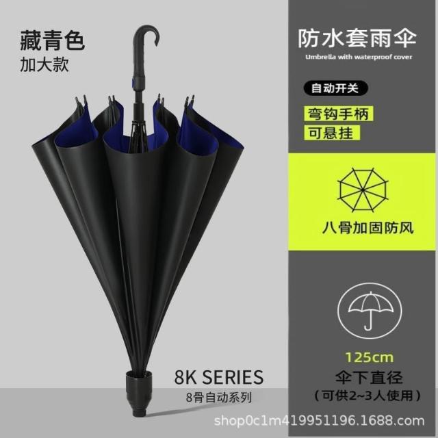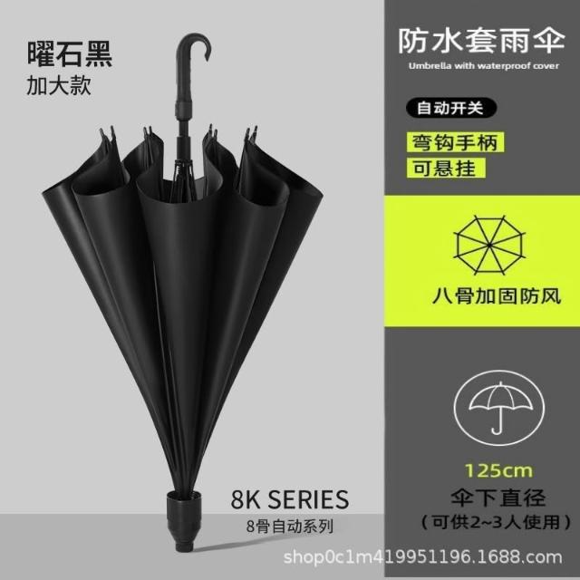 長柄雨傘自動大號雙層太陽傘黑膠防曬彎柄防水套高爾夫直桿傘商務