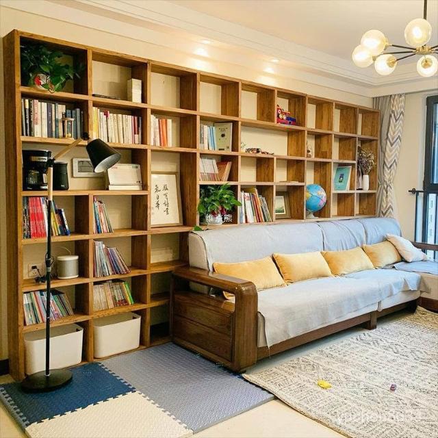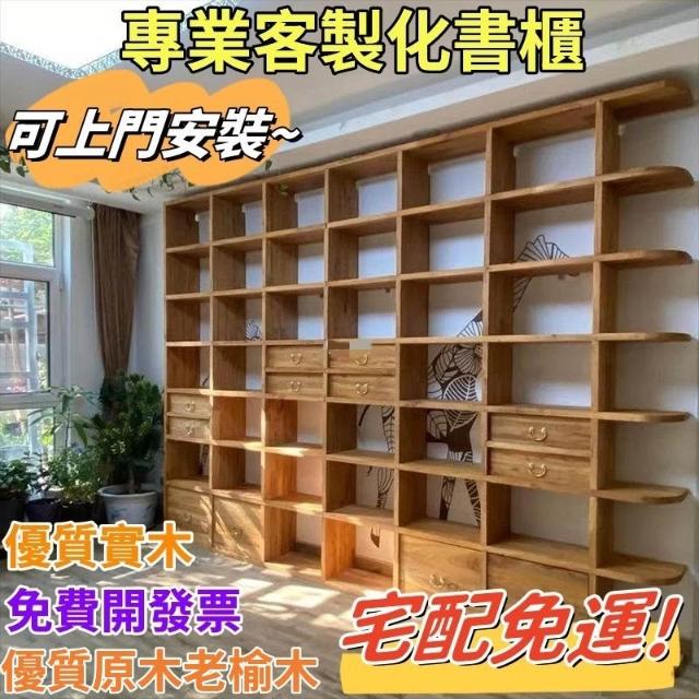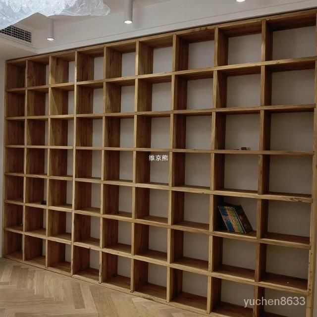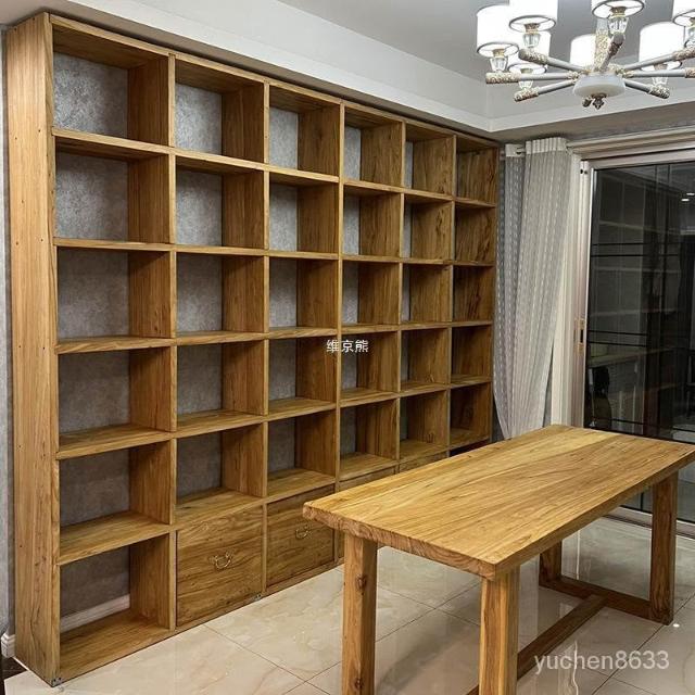 [優質榆木 支持客製化 免運]老榆木書架 客廳落地實木整麵墻書櫃 滿墻書架格子架 書架 置物架 書櫃 墻櫃 格子櫃